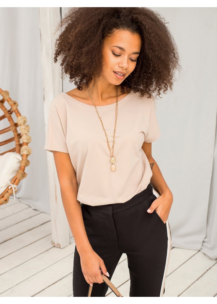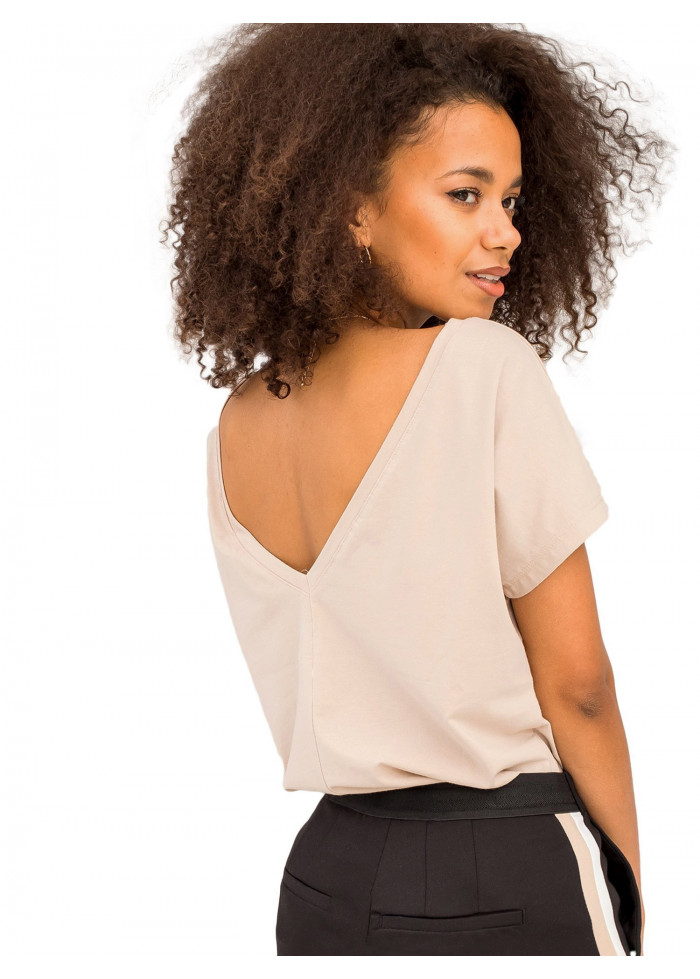Bavlnené dámske tričko, výrazný výstrih do v vzadu, krátky rukáv, jednoduchý voľnejší strih, spôsob prania: pranie v práčke na 30°c, materiál: 90% bavlna, 10% elastan, modelka má na sebe veľkosť s, miery modelky: výška: 174 cm, prsia: 86 cm, pás: 60 cm, boky: 90 cm, rozmer produktu meraného na plocho, vo veľkosti s:, šírka pod plecami: 56 cm, celková dĺžka: 67 cm.