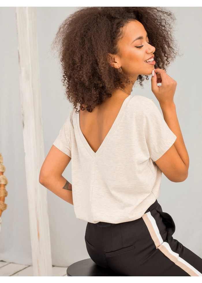 Bavlnené dámske tričko, výrazný výstrih do v vzadu, krátky rukáv, ozdobné prešívanie, spôsob prania: pranie v práčke na 30°c, materiál: 90% bavlna, 10% elastan, modelka má na sebe veľkosť s, miery modelky: výška 175 cm, prsia 84 cm, pás 65 cm, boky 92 cm., rozmer produktu meraného na plocho, vo veľkosti s:, šírka pod plecami: 56 cm, celková dĺžka: 67 cm.