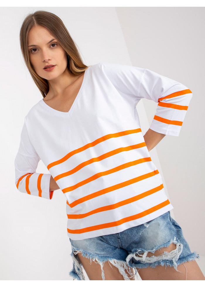 Bavlnené dámske tričko, voľnejší strih, výstrih do v, pruhovaný dizajn, dlhý rukáv, spôsob prania: pranie v práčke na 30°c, materiál: 90% bavlna, 10% elastan, modelka má na sebe veľkosť s/m, miery modelky: výška: 167 cm, prsia: 82 cm, pás: 59 cm, boky: 83 cm, rozmer produktu meraného na plocho, vo veľkosti s/m:, šírka pod plecami: 57 cm, dĺžka rukáva: 42 cm, celková dĺžka: 64 cm.