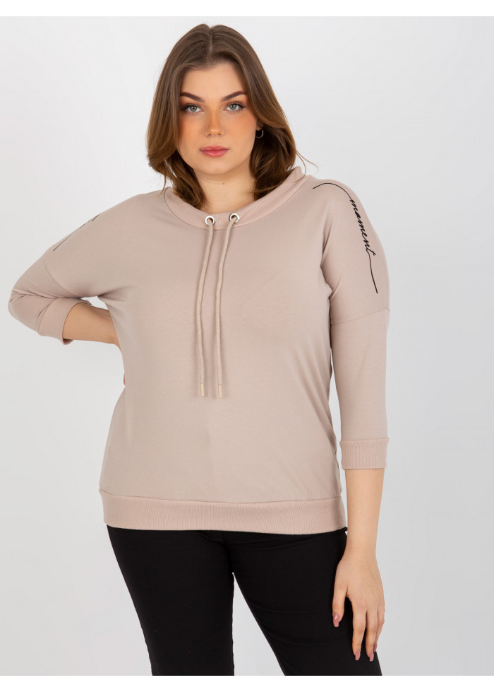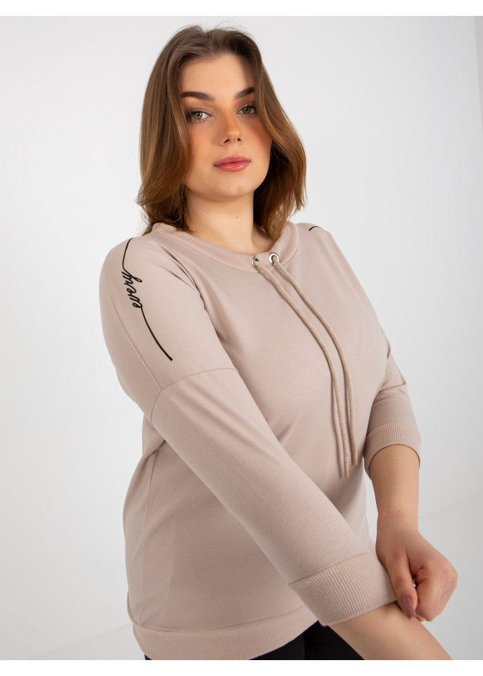 Bavlnené tričko s 3/4 rukávom, ozdobná šnúrka v dekolte, lémy na koncoch rukávov a v spodnej časti, ozdobné nápisy, univerzálna veľkosť, miery modelky: výška 172 cm, prsia 103 cm, pás 73 cm, boky 103 cm., rozmer produktu meraného na plocho:, šírka pod plecami: 64 cm, dĺžka rukáva: 42 cm, celková dĺžka: 63 cm.