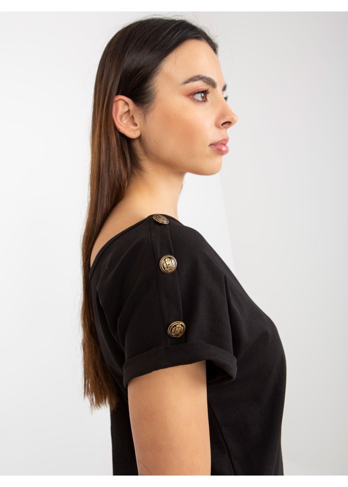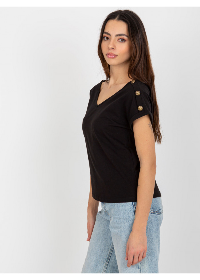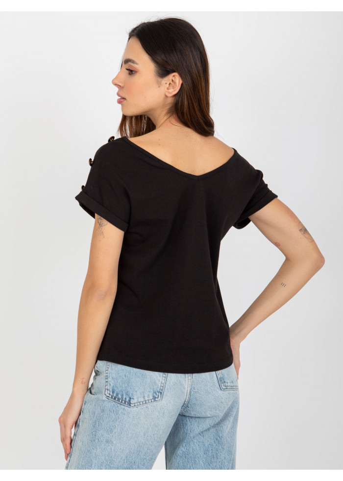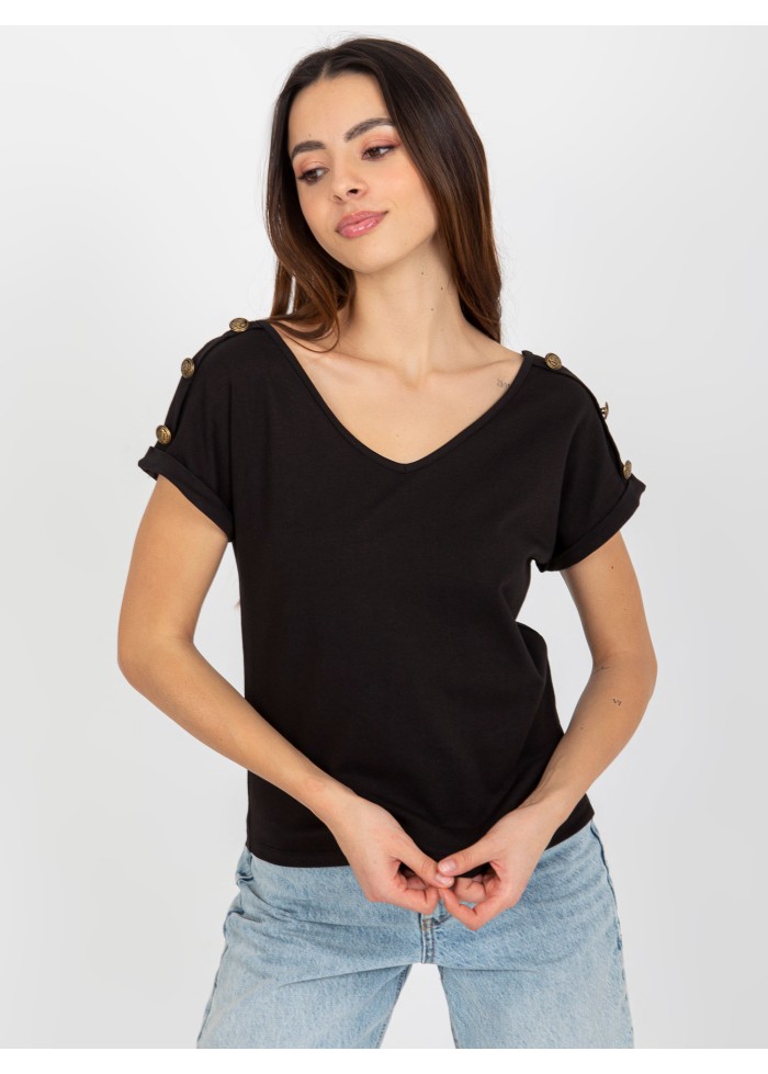 Bavlnené dámske tričko, výstrih do v aj vzadu, ozdobné gombíky na ramenách, ozdobné lémy na rukávoch, modelka má na sebe veľkosť s, miery modelky: výška: 175 cm, prsia: 84 cm, pás: 61 cm, boky: 91 cm, rozmer produktu meraného na plocho, vo veľkosti s:, šírka pod plecami: 47 cm, celková dĺžka: 56 cm.