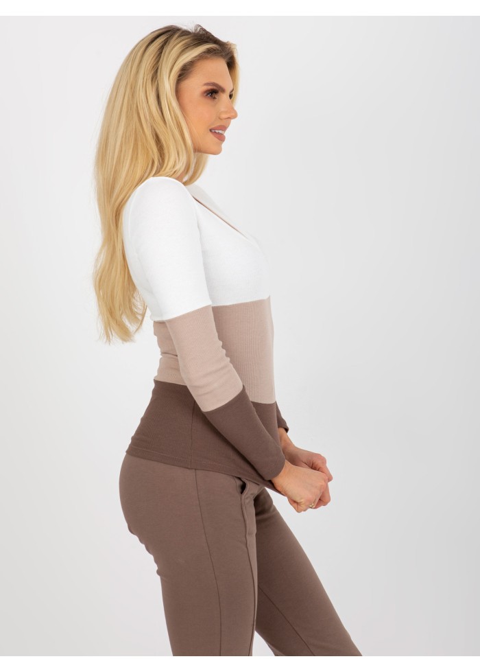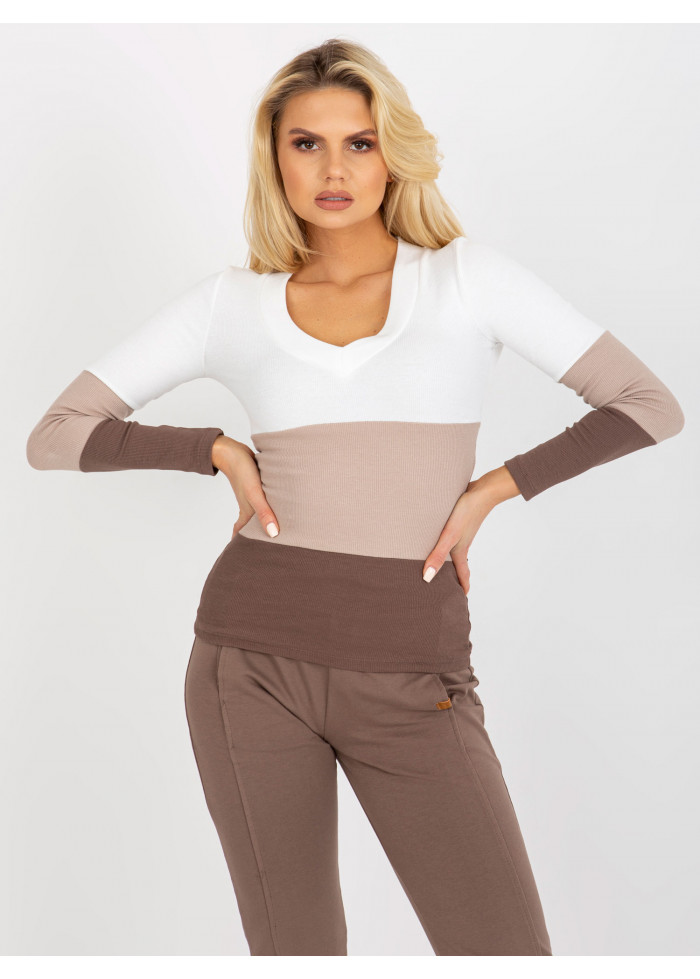 Dámske tričko, jemný rebrovaný úplet, dlhý rukáv, výstrih do v, jednoduchý obtiahnutý strih, modelka má na sebe veľkosť s, miery modelky: výška: 175 cm, prsia: 85 cm, pás: 63 cm, boky: 95 cm, rozmer produktu meraného na plocho, vo veľkosti s:, šírka pod plecami: 39 cm, dĺžka rukáva: 55 cm, celková dĺžka: 59 cm.