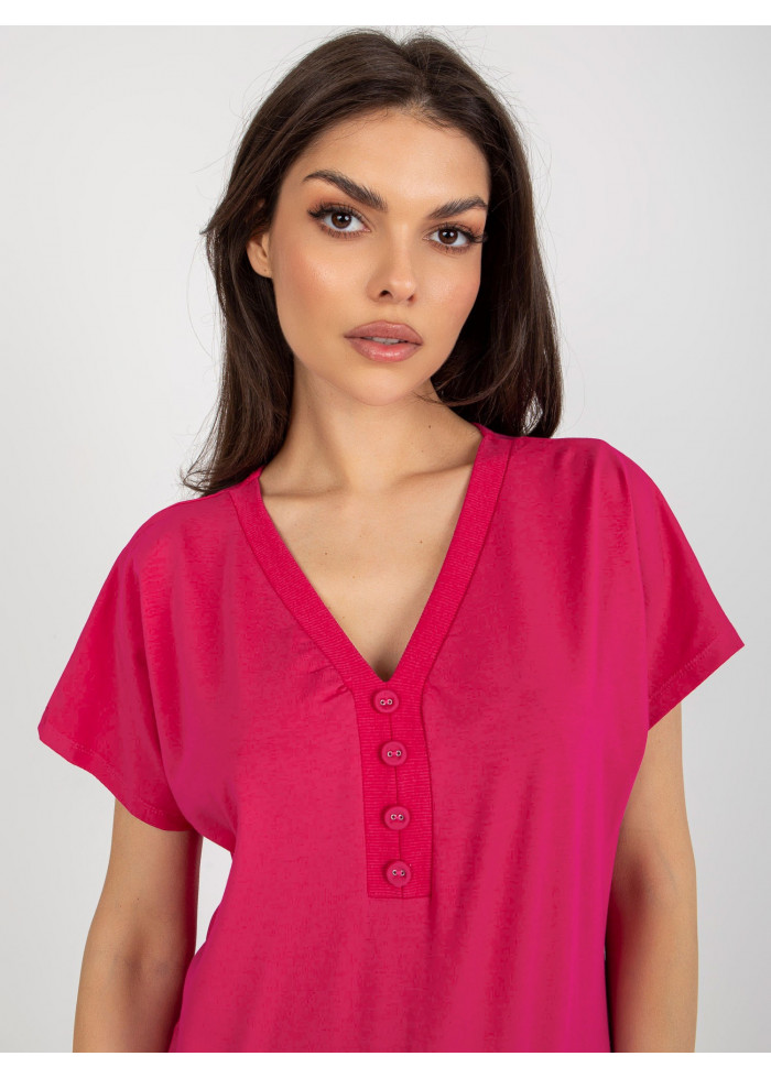 Bavlnené dámske tričko, výstrih do v, ozdobné gombíky, lém na spodnej časti, jednoduchý strih, modelka má na sebe veľkosť s/m, miery modelky: výška 176 cm, prsia 85 cm, pás: 64 cm, boky: 92 cm, rozmer produktu meraného na plocho, vo veľkosti s/m:, šírka pod plecami: 56 cm, celková dĺžka: 64 cm.