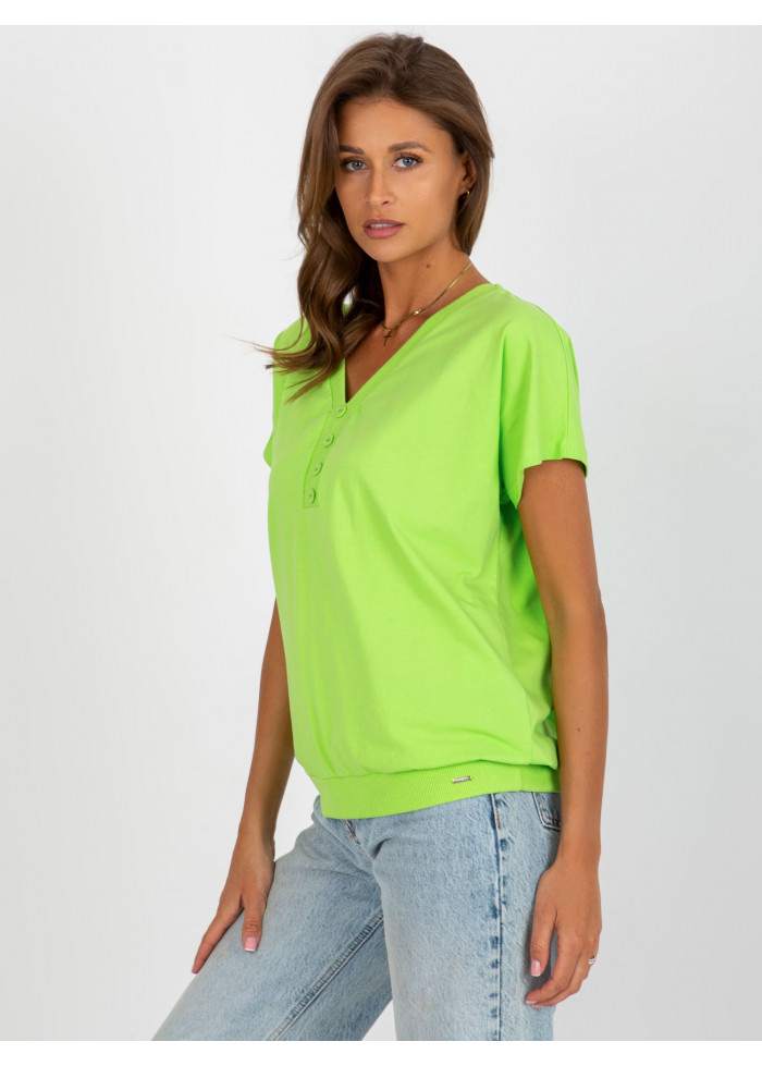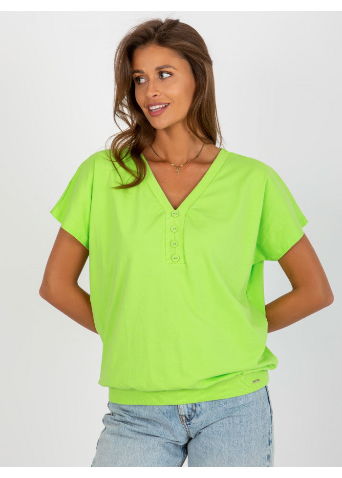 Bavlnené dámske tričko, výstrih do v, ozdobné gombíky, lém na spodnej časti, jednoduchý strih, modelka má na sebe veľkosť s/m, miery modelky: výška 176 cm, prsia 85 cm, pás: 64 cm, boky: 92 cm, rozmer produktu meraného na plocho, vo veľkosti s/m:, šírka pod plecami: 56 cm, celková dĺžka: 64 cm.