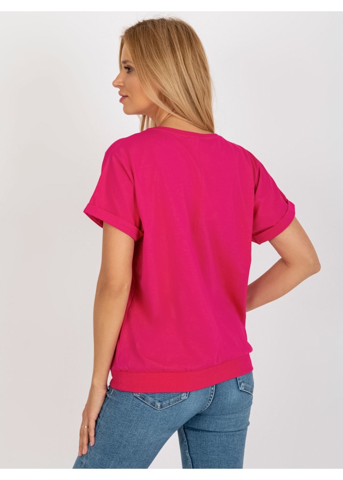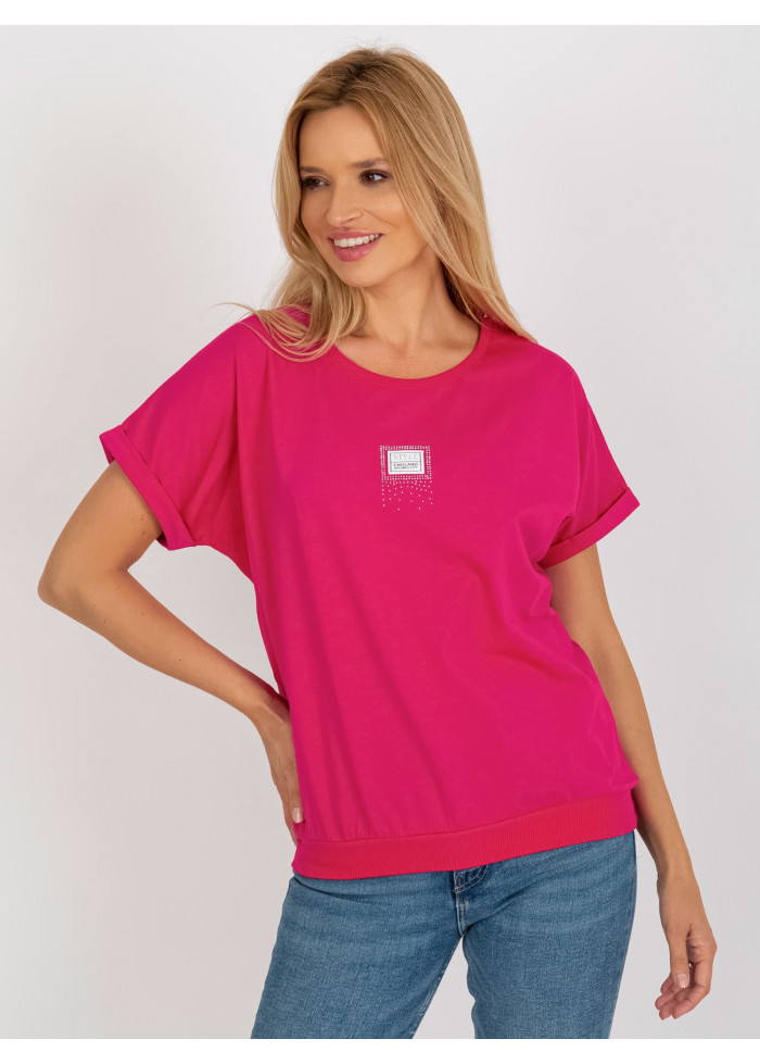 Bavlnené dámske tričko, okrúhly výstrih, krátky rukáv, ozdobná aplikácia, ozdobné lémy na rukávoch, lém v spodnej časti, modelka má na sebe veľkosť s/m, miery modelky: výška 175 cm, prsia 84 cm, pás 65 cm, boky 92 cm., rozmer produktu meraného na plocho, vo veľkosti s/m:, šírka pod plecami: 58 cm, celková dĺžka: 62 cm.