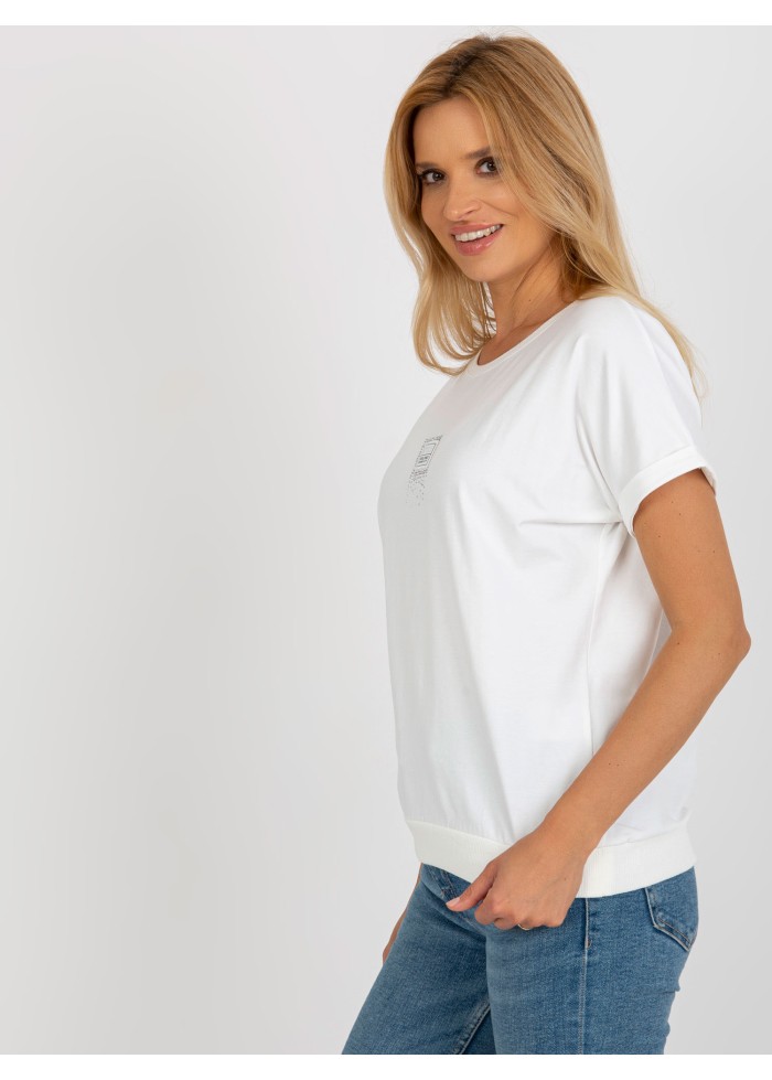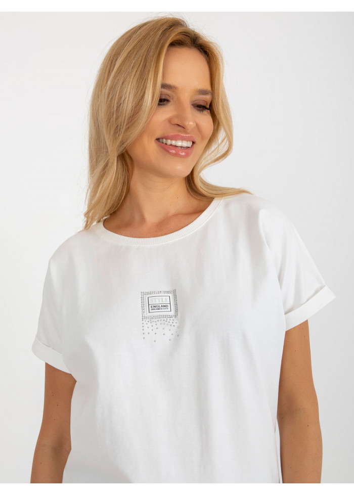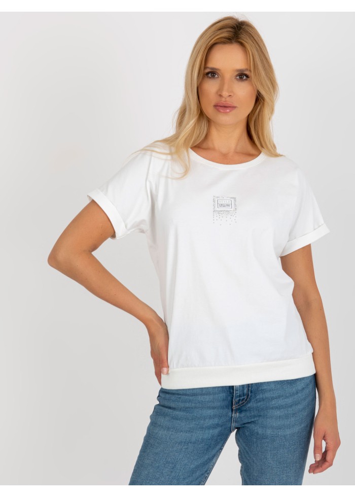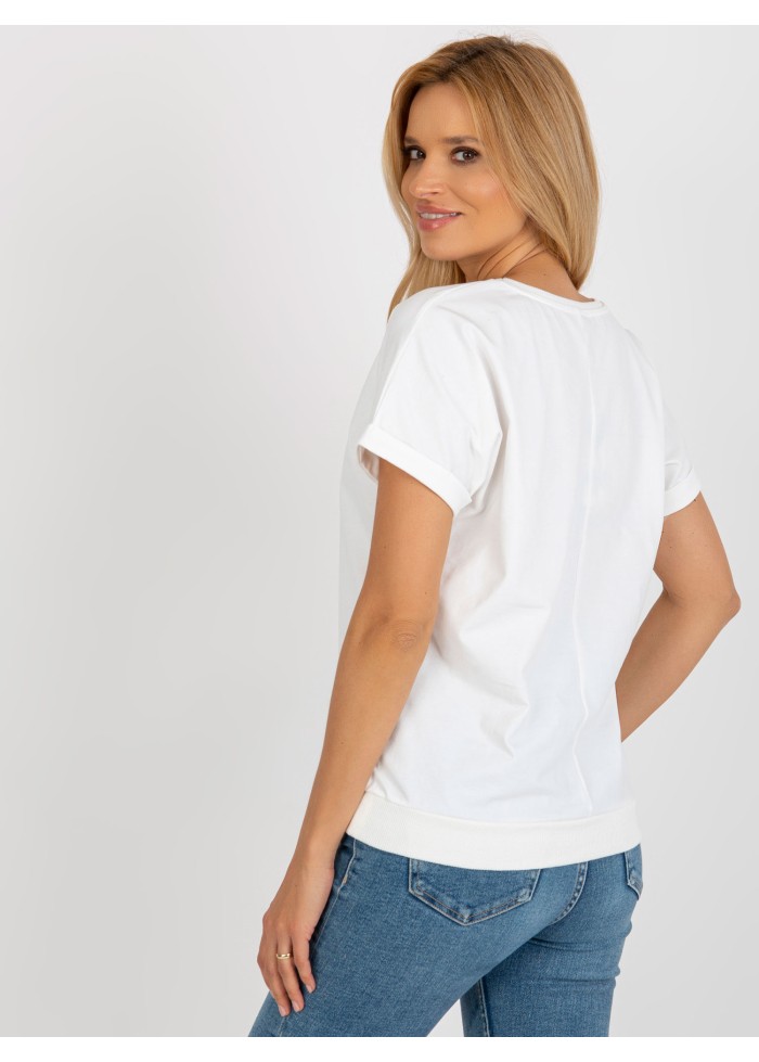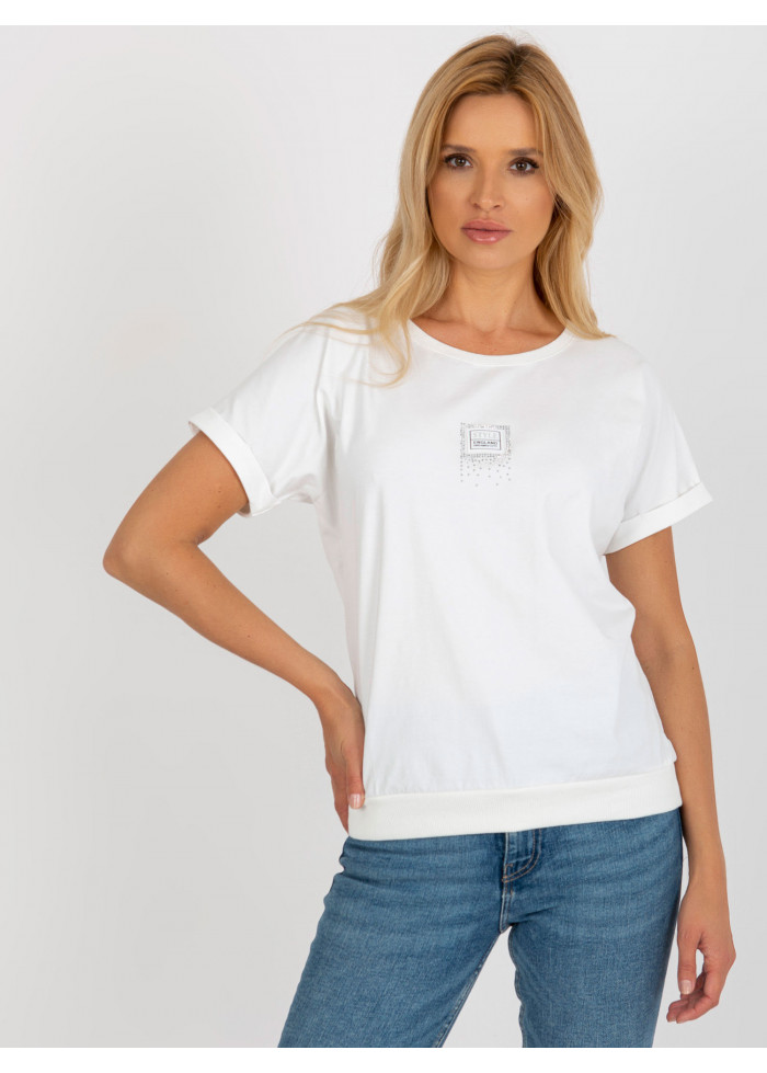 Bavlnené dámske tričko, okrúhly výstrih, krátky rukáv, ozdobná aplikácia, ozdobné lémy na rukávoch, lém v spodnej časti, modelka má na sebe veľkosť s/m, miery modelky: výška 175 cm, prsia 84 cm, pás 65 cm, boky 92 cm., rozmer produktu meraného na plocho, vo veľkosti s/m:, šírka pod plecami: 58 cm, celková dĺžka: 62 cm.