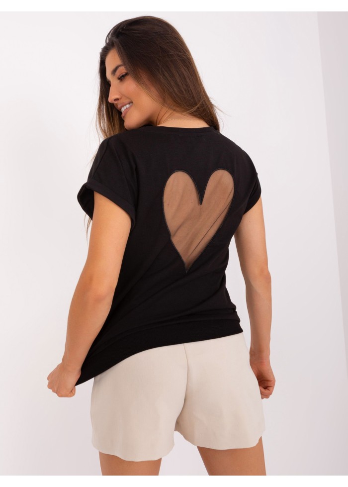 Dámske tričko, okrúhly výstrih, krátky rukáv, ozdobný lém na rukávoch, lém na spodnej časti, priehľadná aplikácia na chrbte, univerzálna veľkosť, miery modelky: výška 176 cm, prsia 85 cm, pás: 64 cm, boky: 92 cm, rozmer produktu meraného na plocho:, šírka pod plecami: 48 cm, celková dĺžka: 61 cm.