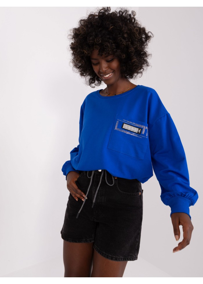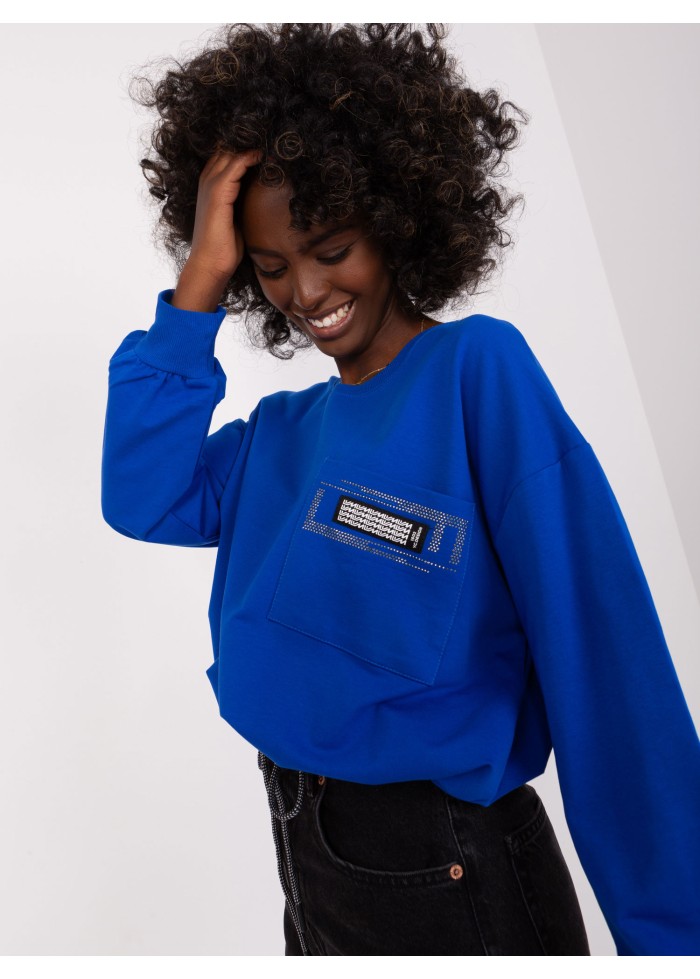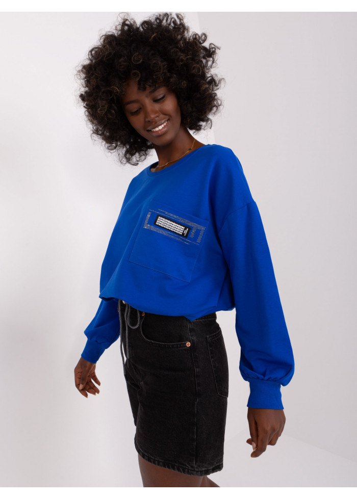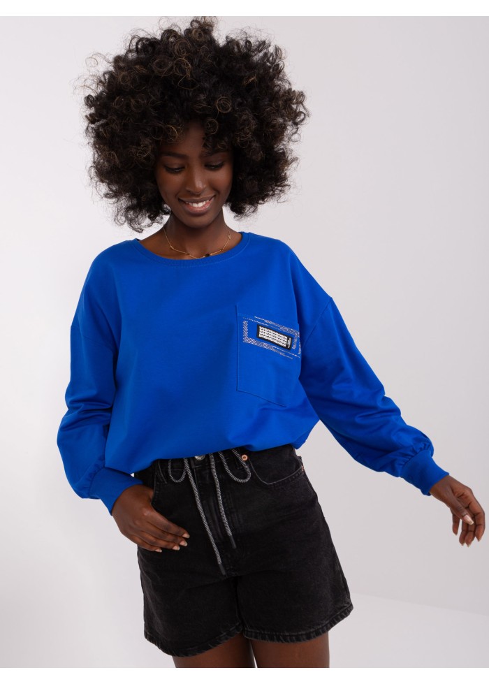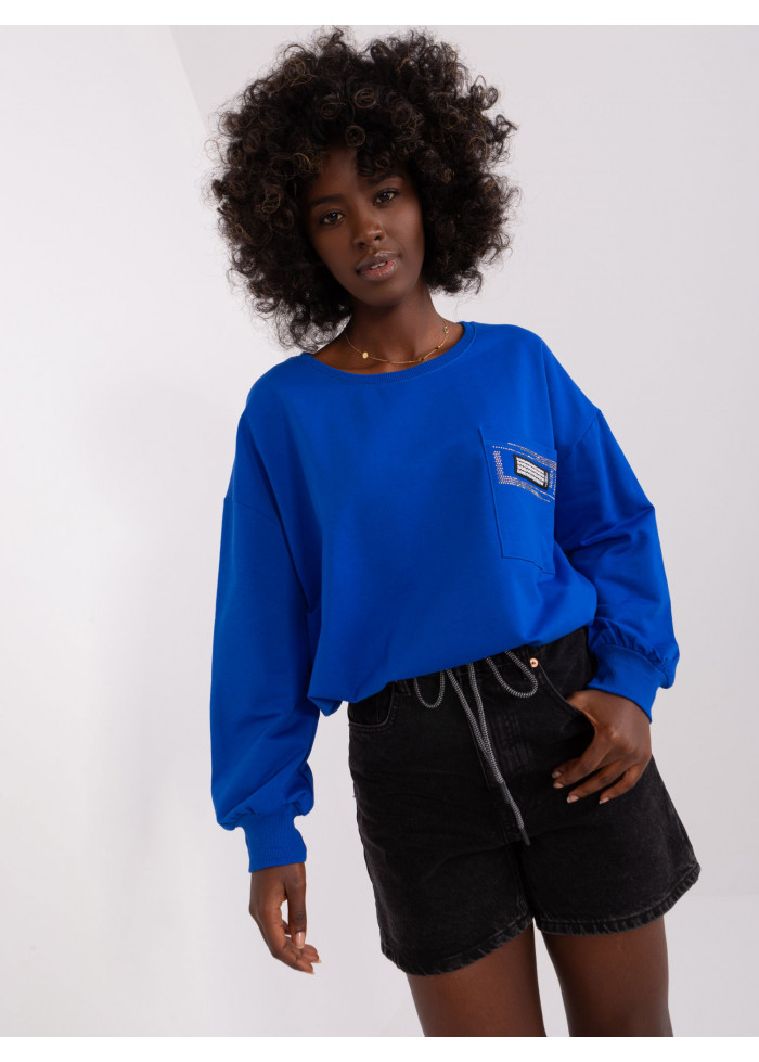 Bavlnené dámske tričko, okrúhly výstrih, šnúrka v spodnej časti, lémy na konci rukávov, ozdobná aplikácia, 1 náprsné vrecko, univerzálna veľkosť, šírka pod plecami: 55 cm, dĺžka rukáva: 45 cm, celková dĺžka: 51 cm.