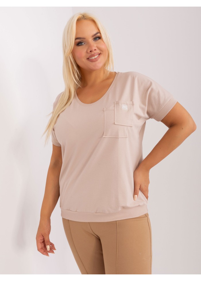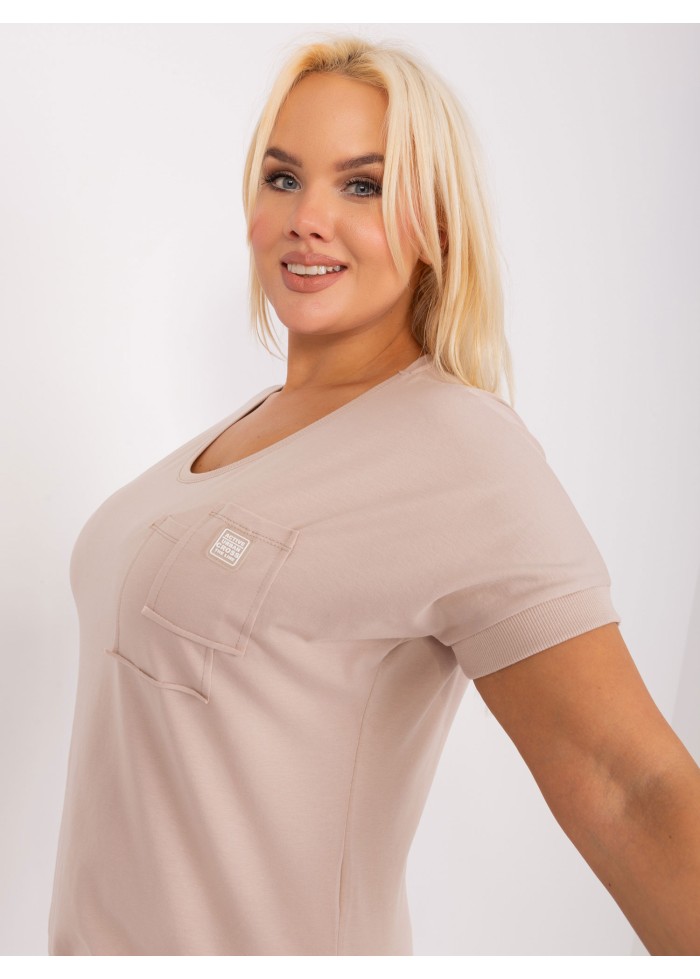 Bavlnené dámske tričko, krátky rukáv s ozdobným lémom, výstrih do v, lém na spodnej časti, náprsné vrecko, univerzálna veľkosť, miery modelky: výška 172 cm, prsia 103 cm, pás 73 cm, boky 103 cm., rozmer produktu:, šírka pod plecami: 60 cm, celková dĺžka: 65 cm.