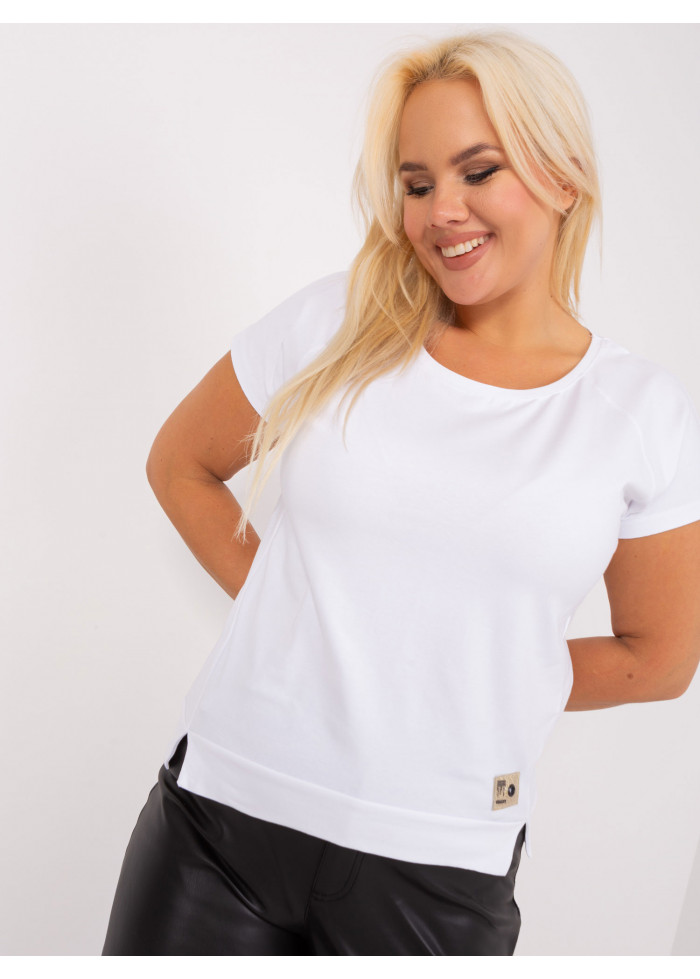 Dámske tričko s krátkym rukávom, okrúhly výstrih, lém na spodnej časti, malé rozparky na bokoch, univerzálna veľkosť, miery modelky: výška 172 cm, prsia 103 cm, pás 73 cm, boky 103 cm., rozmer produktu meraného na plocho:, šírka pod plecami: 58 cm, celková dĺžka: 61 cm.