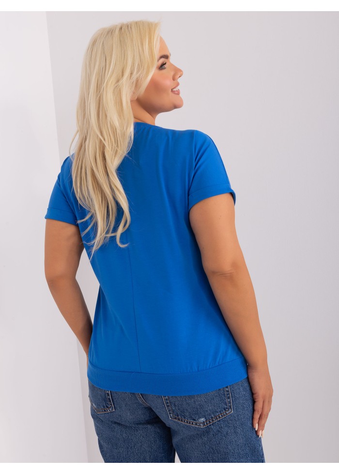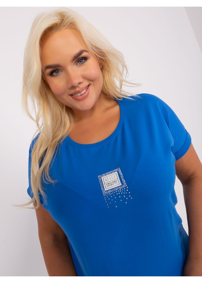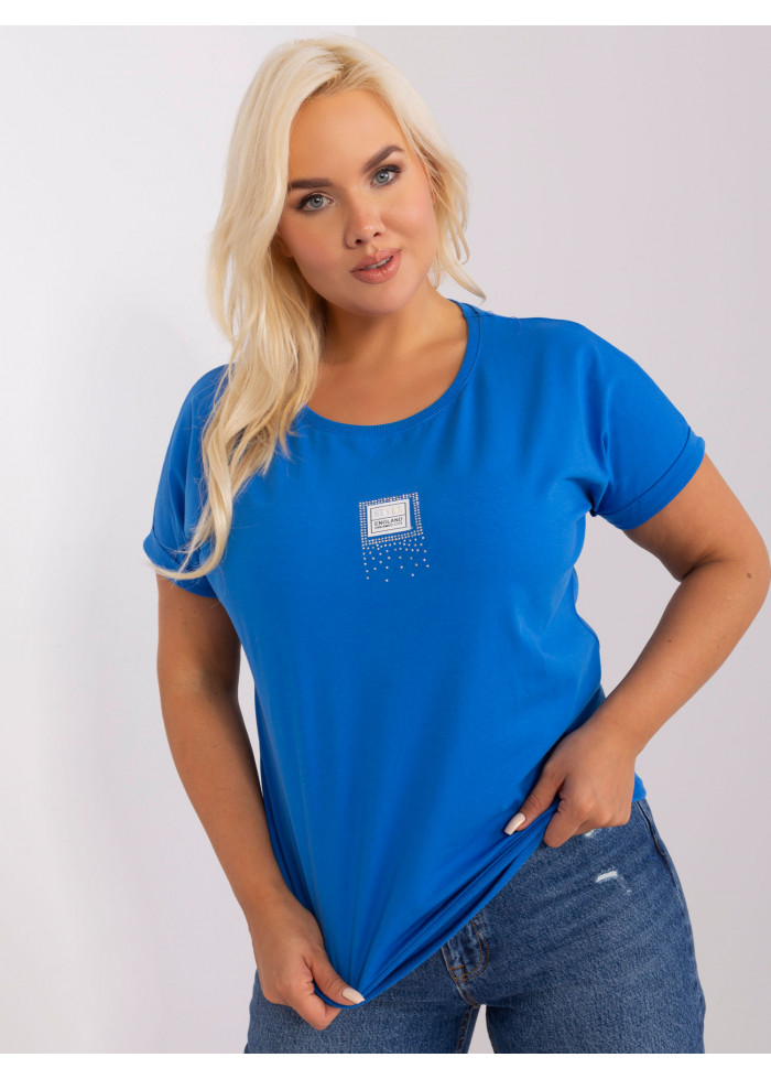 Dámske tričko s krátkym rukávom, okrúhly výstrih, lém na spodnej časti, ozdobný lém na rukávoch, ozdobná nášivka, univerzálna veľkosť, miery modelky: výška 172 cm, prsia 103 cm, pás 73 cm, boky 103 cm., rozmer produktu meraného na plocho:, šírka pod plecami: 65 cm, celková dĺžka: 65 cm.