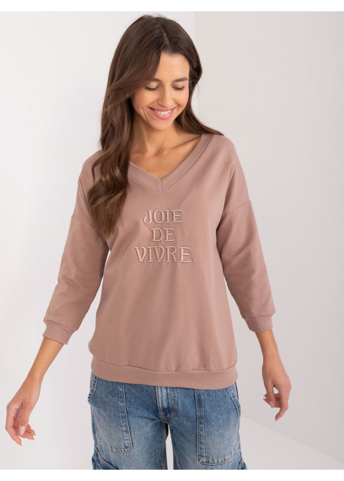 Dámske tričko s nápisom, výstrih do v, 3/4 rukávy, lémy na koncoch rukávov v spodnej časti a pri krku, univerzálna veľkosť, miery modelky: výška 172 cm, prsia 103 cm, pás 73 cm, boky 103 cm., rozmer produktu meraného na plocho:, šírka pod plecami: 53 cm, dĺžka rukáva: 41 cm, celková dĺžka: 59 cm.
