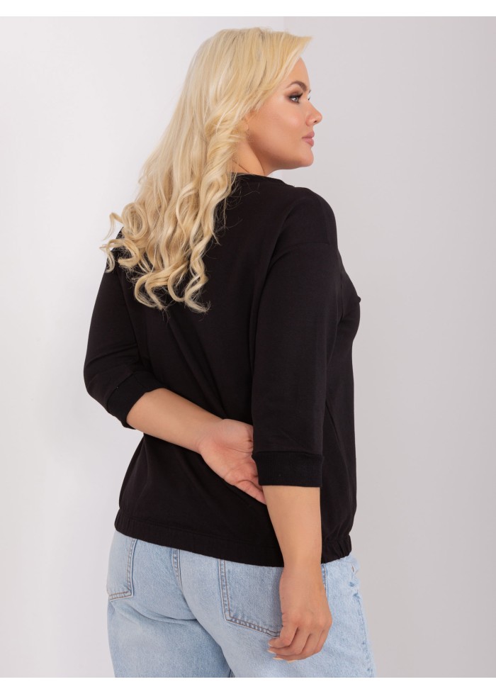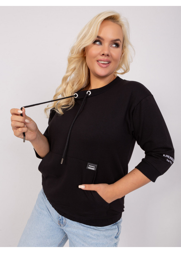 Dámske tričko s 3/4 rukávom, okrúhly výstrih, ozdobná šnúrka v dekolte, klokanie vrecko, lémy na konci rukávov, sťahujúca guma v spodnej časti, ozdobné nášivky, univerzálna veľkosť, miery modelky: výška 172 cm, prsia 103 cm, pás 73 cm, boky 103 cm., rozmer produktu meraného na plocho:, šírka pod plecami: 57 cm, dĺžka rukáva: 43 cm, celková dĺžka: 63 cm.