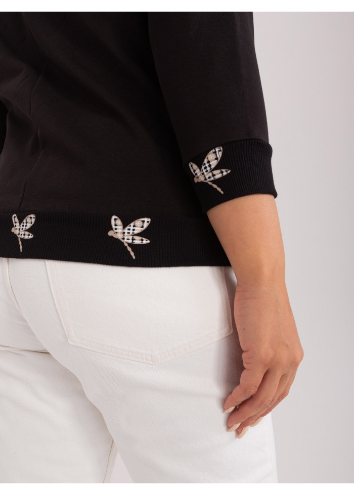 Dámske tričko s 3/4 rukávom, okrúhly výstrih, ozdobná potlač, lémy na koncoch rukávov a v spodnej časti, univerzálna veľkosť, miery modelky: výška 172 cm, prsia 103 cm, pás 73 cm, boky 103 cm., rozmer produktu meraného na plocho:, šírka pod plecami: 60 cm, dĺžka rukáva: 42 cm, celková dĺžka: 63 cm.