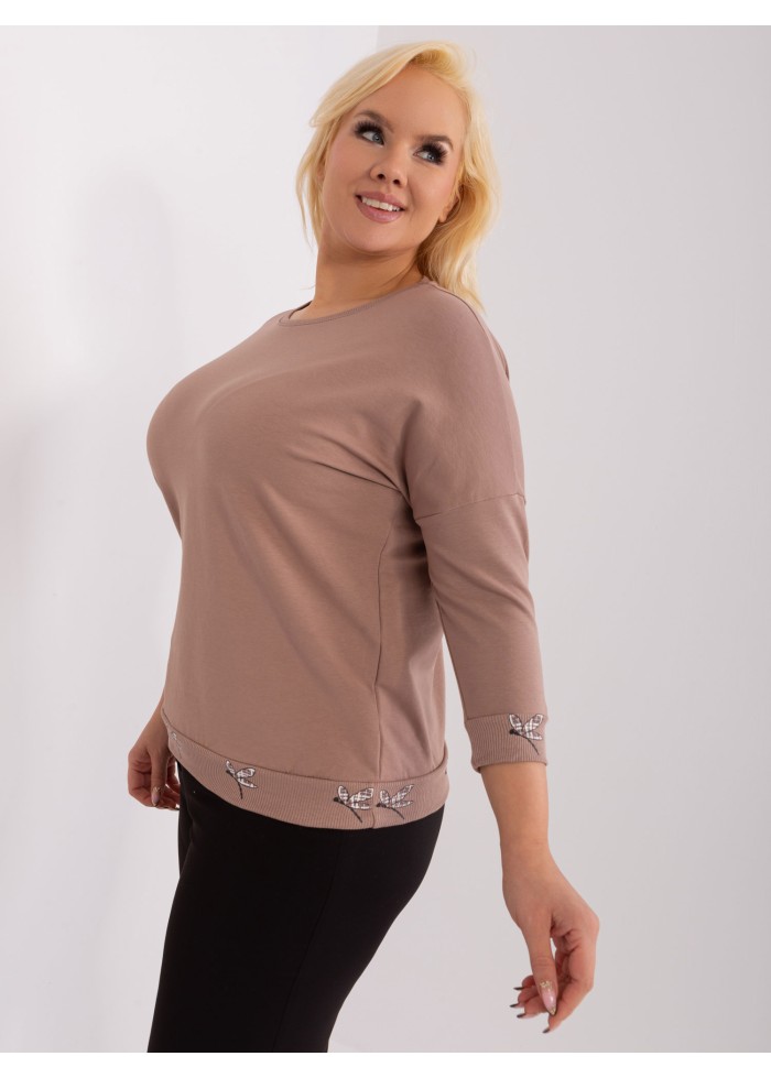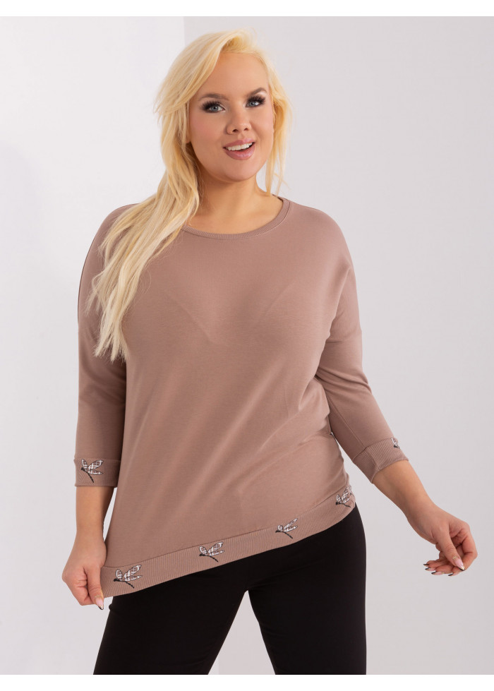 Dámske tričko s 3/4 rukávom, okrúhly výstrih, ozdobná potlač, lémy na koncoch rukávov a v spodnej časti, univerzálna veľkosť, miery modelky: výška 172 cm, prsia 103 cm, pás 73 cm, boky 103 cm., rozmer produktu meraného na plocho:, šírka pod plecami: 60 cm, dĺžka rukáva: 42 cm, celková dĺžka: 63 cm.