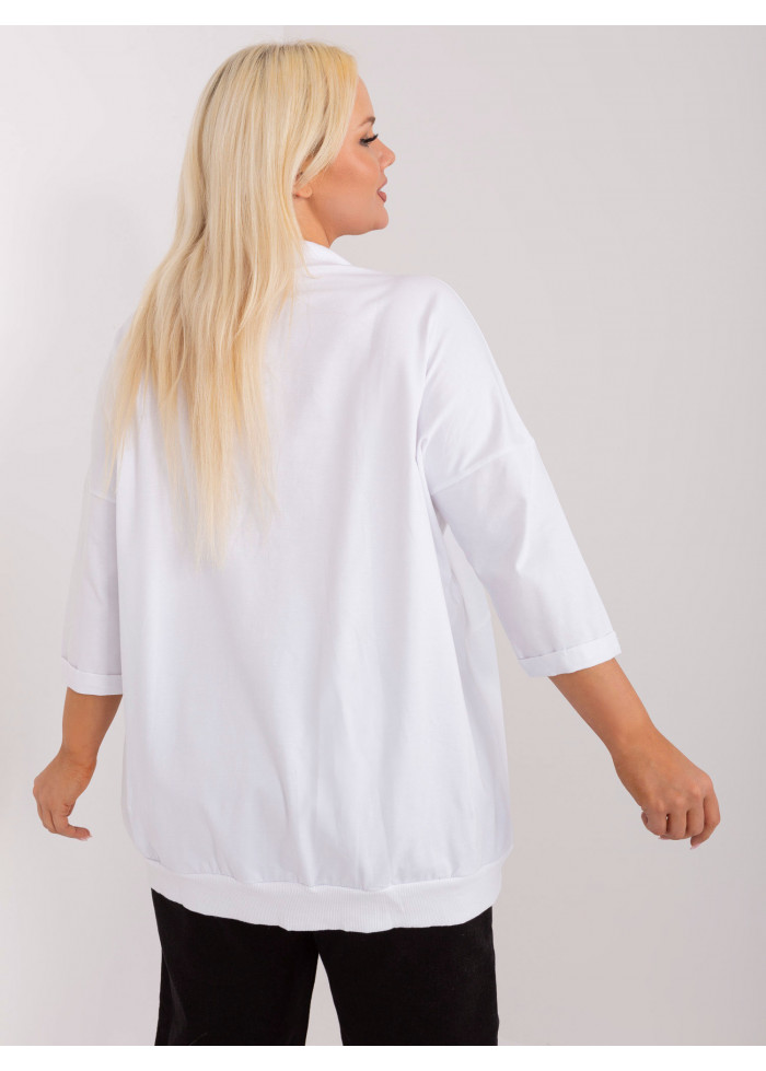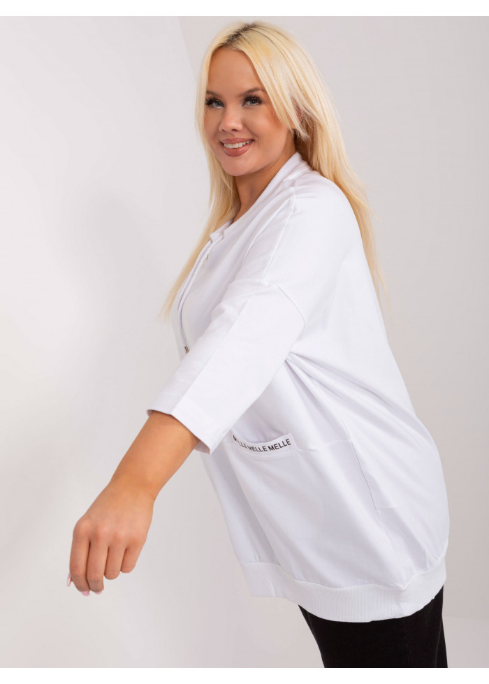 Bavlnené tričko s 3/4 rukávom, okrúhly výstrih, ozdobná šnúrka v dekolte, 2 vrecká, ozdobné nápisy, lém v spodnej časti, voľnejsí strih, univerzálna veľkosť, miery modelky: výška 172 cm, prsia 103 cm, pás 73 cm, boky 103 cm., rozmer produktu meraného na plocho:, šírka pod plecami: 76 cm, dĺžka rukáva: 43 cm, celková dĺžka: 77 cm.
