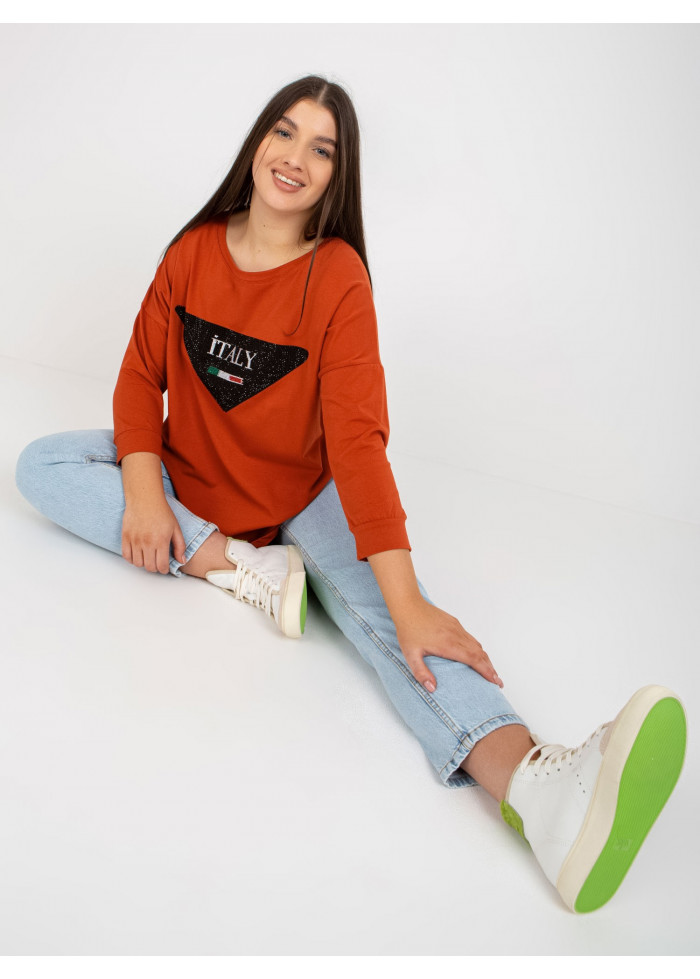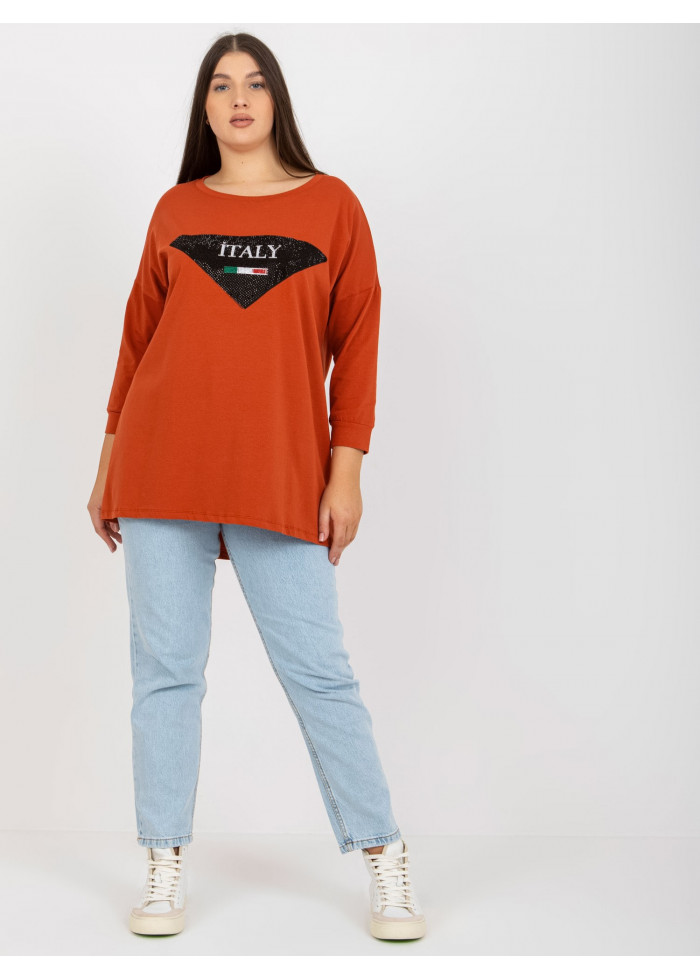 Bavlnené dámske tričko, 7/8 rukávy, asymetrický strih, ozdobné aplikácie, univerzálna veľkosť, miery modelky: výška: 174 cm, prsia: 100 cm, pás: 74 cm, boky: 107 cm, rozmer produktu meraného na plocho:, šírka pod plecami: 67 cm, dĺžka rukáva: 47 cm, celková dĺžka: 82 cm.