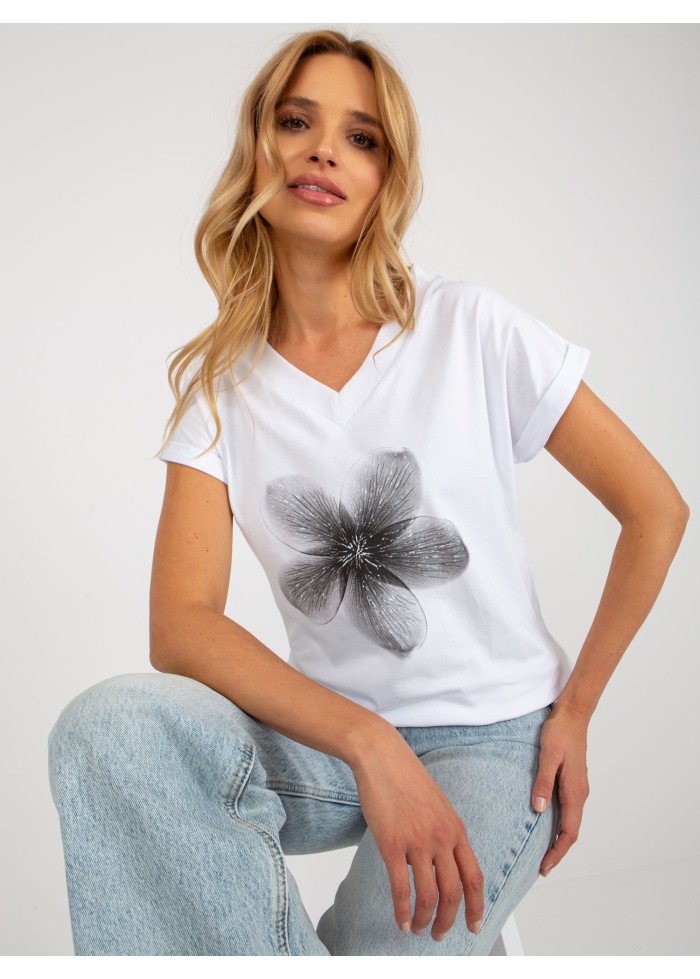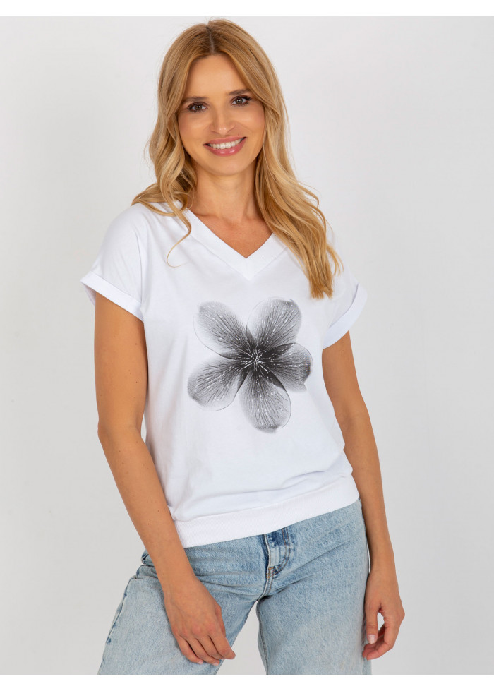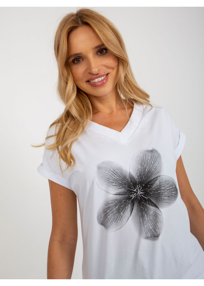 Dámske tričko s potlačou, výstrih do v, krátky rukáv, lém v spodnej časti, modelka má na sebe veľkosť s/m, miery modelky: výška: 175 cm, prsia: 84 cm, pás: 61 cm, boky: 91 cm, rozmer produktu meraného na plocho, vo veľkosti s/m:, šírka pod plecami: 54 cm, celková dĺžka: 62 cm.