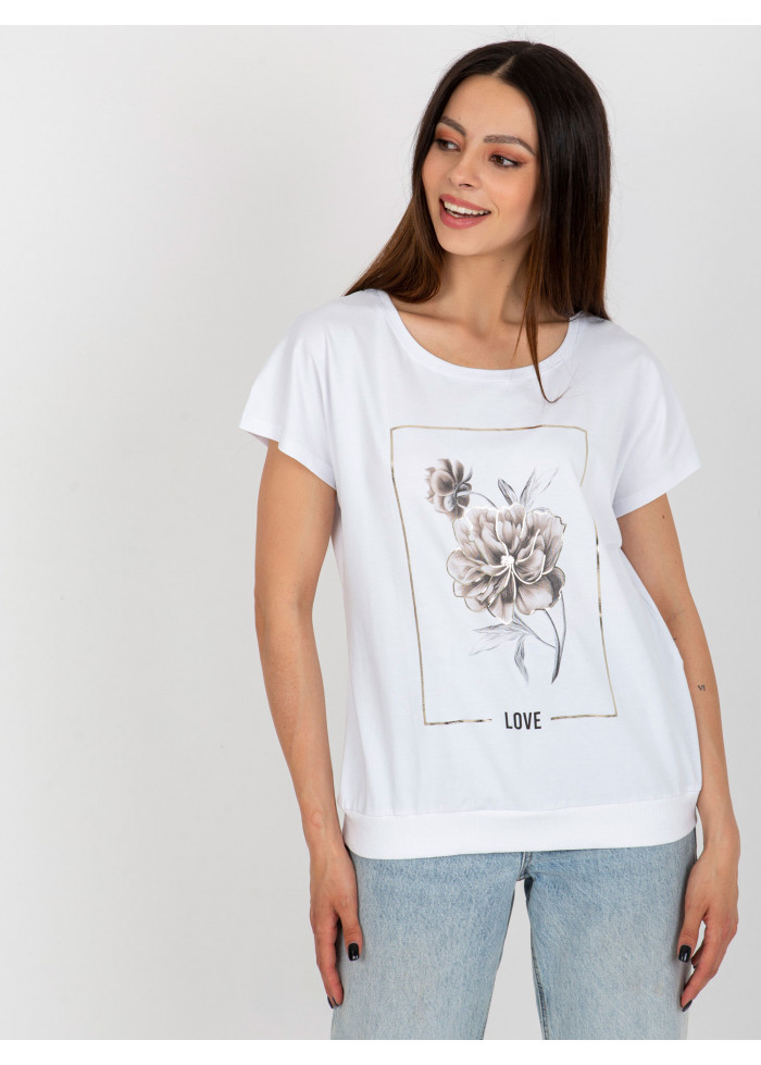 Dámske tričko s potlačou, okrúhly výstrih, krátky rukáv, lém v spodnej časti, modelka má na sebe veľkosť s/m, miery modelky: výška: 175 cm, prsia: 84 cm, pás: 61 cm, boky: 91 cm, rozmer produktu meraného na plocho, vo veľkosti s/m:, šírka pod plecami: 54 cm, celková dĺžka: 62 cm.