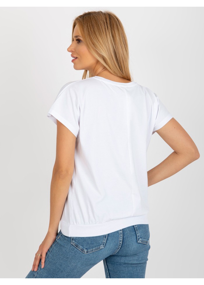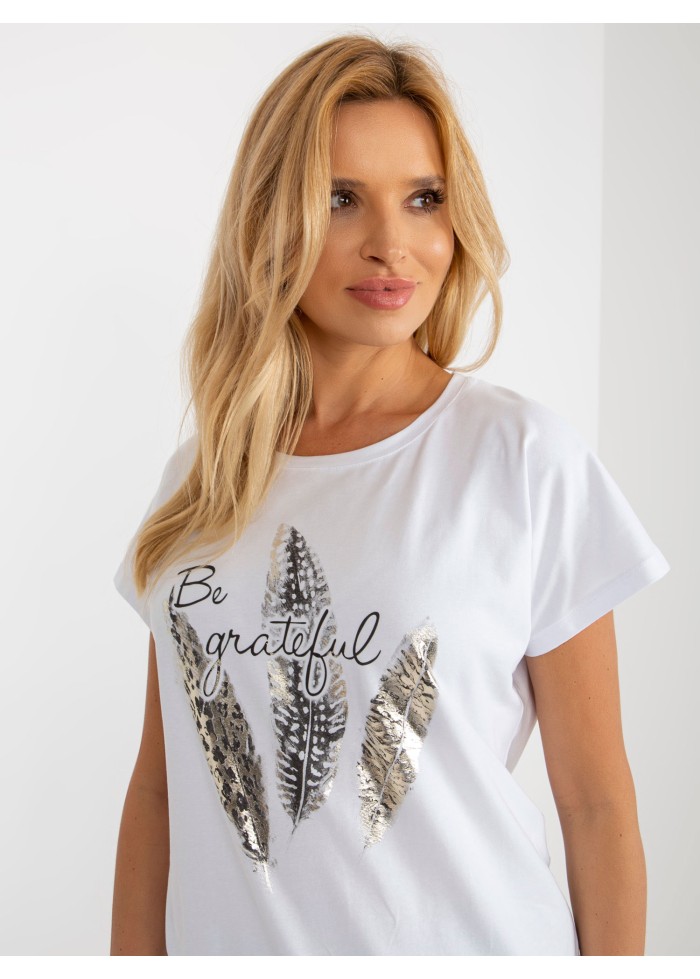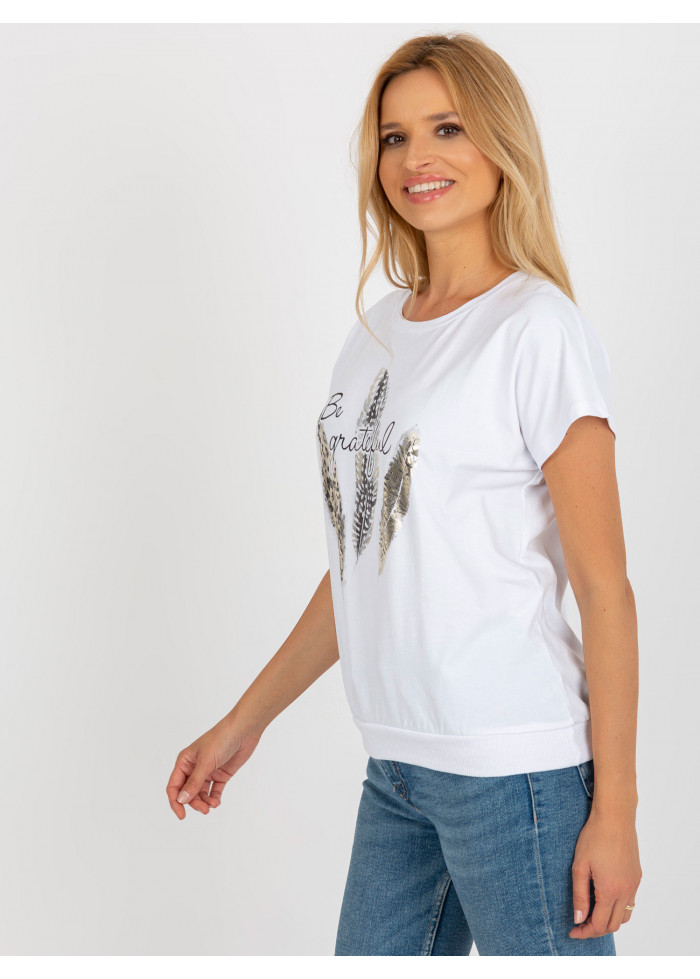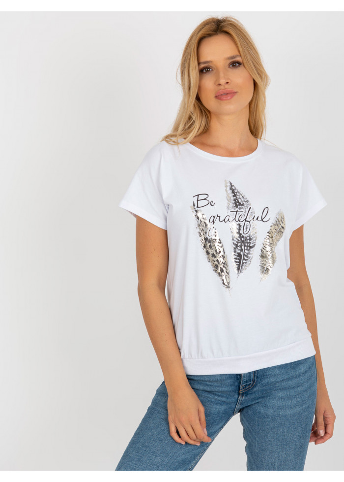 Dámske tričko s potlačou, okrúhly výstrih, krátky rukáv, lém v spodnej časti, ozdobné lémy na rukávoch, modelka má na sebe veľkosť s/m, miery modelky: výška 175 cm, prsia 84 cm, pás 65 cm, boky 92 cm., rozmer produktu meraného na plocho, vo veľkosti s/m:, šírka pod plecami: 57 cm, celková dĺžka: 57 cm.