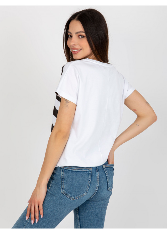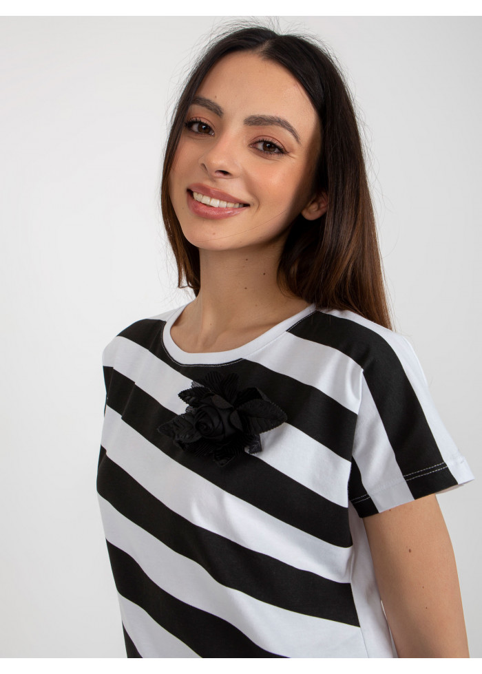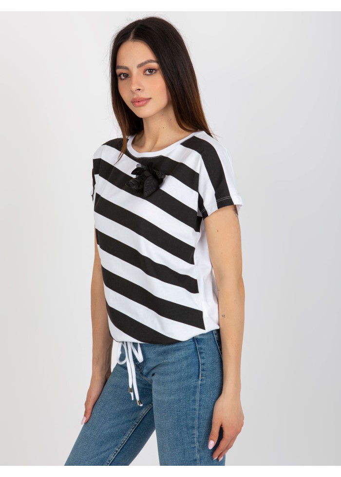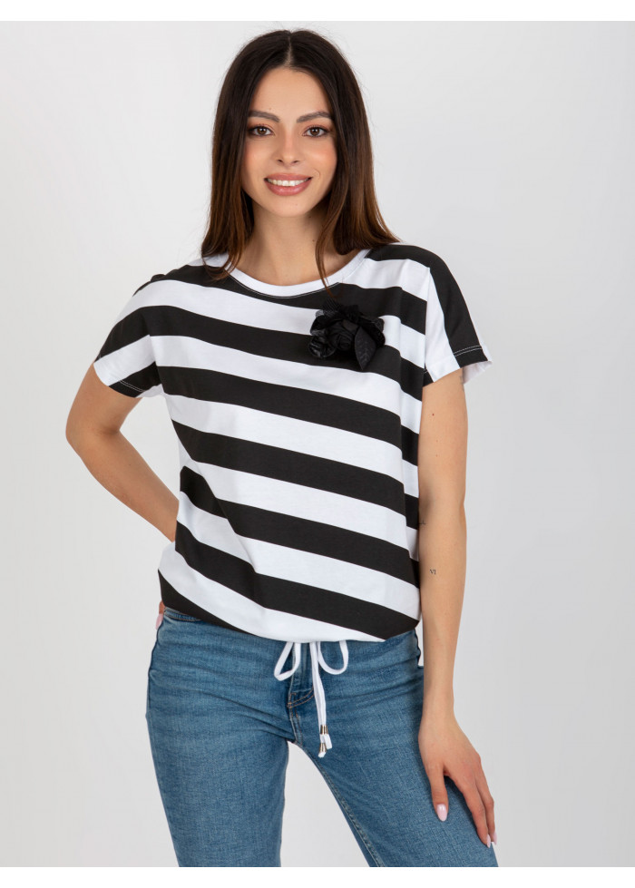 Dámske tričko, krátky rukáv, okrúhly výstrih, pruhovaný dizajn, ozdobná aplikácia, šnúrka na stiahnutie v spodnej časti, univerzálna veľkosť, miery modelky: výška: 175 cm, prsia: 84 cm, pás: 61 cm, boky: 91 cm, rozmer produktu meraného na plocho:, šírka pod plecami: 55 cm, celková dĺžka: 61 cm.