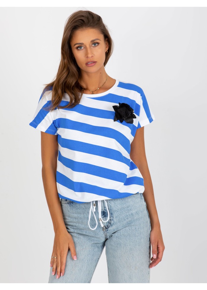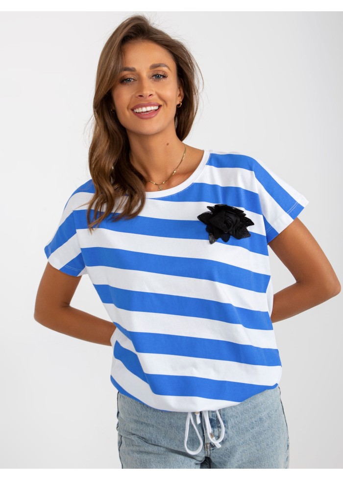 Dámske tričko, krátky rukáv, okrúhly výstrih, pruhovaný dizajn, ozdobná aplikácia, šnúrka na stiahnutie v spodnej časti, univerzálna veľkosť, miery modelky: výška: 175 cm, prsia: 84 cm, pás: 61 cm, boky: 91 cm, rozmer produktu meraného na plocho:, šírka pod plecami: 55 cm, celková dĺžka: 61 cm.