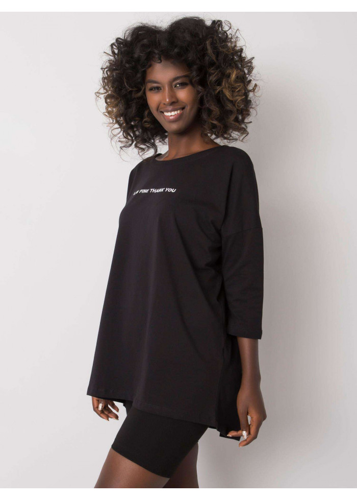 Bavlnené dámske tričko s 3/4 rukávom, pohodlný voľný strih, okrúhly výstrih, potlač s nádpisom, materiál: 90% bavlna, 10% elastan, spôsob prania: pranie v práčke na 30°c, modelka má na sebe veľkosť s. rozmery modelky: výška 175 cm, prsia 85 cm, pás 65 cm, boky 89 cm., rozmery blúzky vo veľkosti s merané naplocho: šírka v podpazuší - 64 cm, celková dĺžka - 69 cm, dĺžka rukáva - 38 cm.