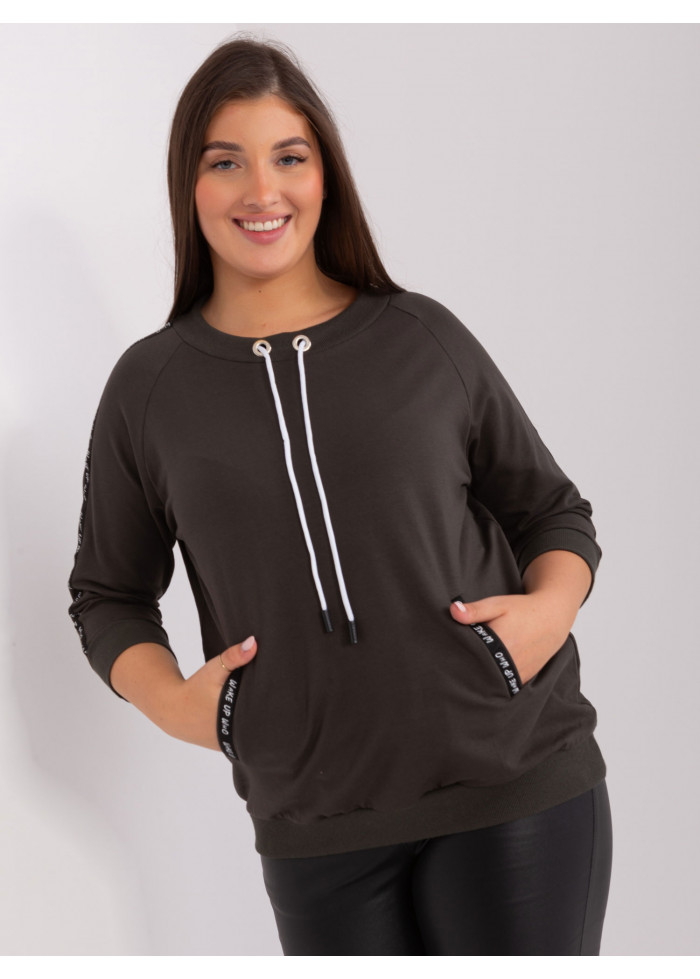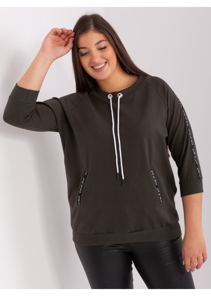 Bavlnené tričko s 3/4 rukávom, okrúhly výstrih, ozdobná šnúrka v dekolte, 2 vrecká, ozdobné aplikácie, lém na spodnej časti, univerzálna veľkosť, miery modelky: výška 172 cm, prsia 103 cm, pás 73 cm, boky 103 cm., rozmer produktu meraného na plocho:, šírka pod plecami: 60 cm, dĺžka rukáva: 44 cm, celková dĺžka: 65 cm.