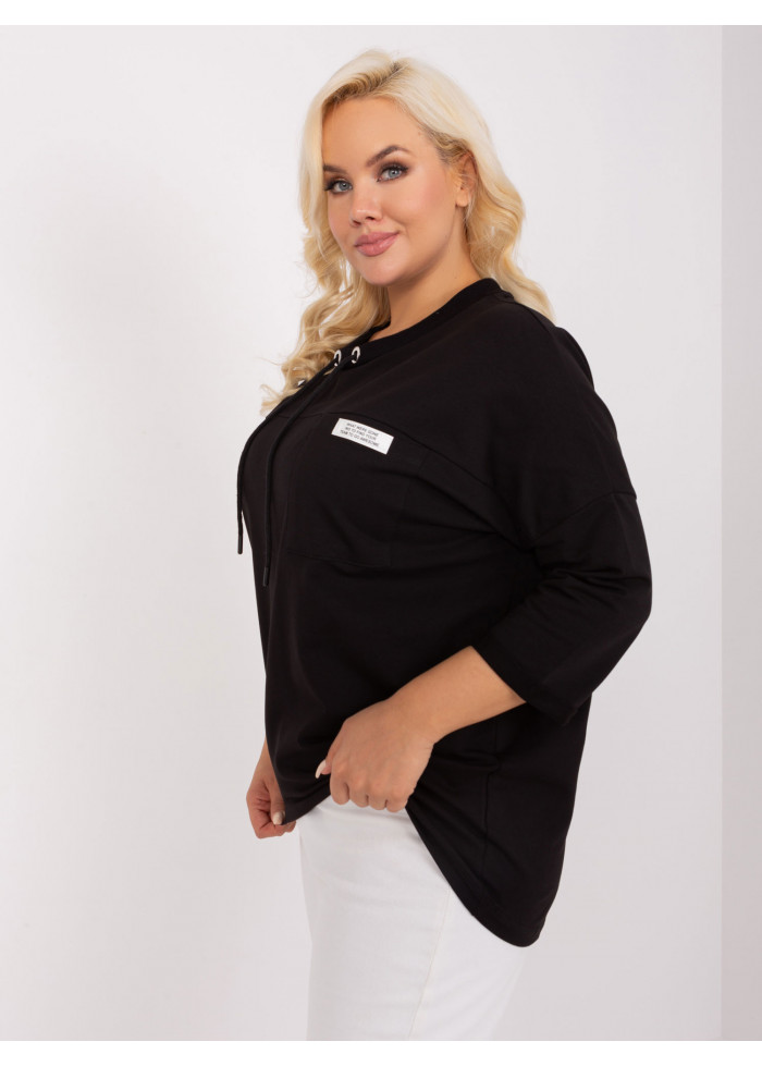 Bavlnené tričko s 3/4 rukávom, okrúhly výstrih, ozdobná šnúrka v dekolte, ozdobná nášivka, asymetrický strih, univerzálna veľkosť, miery modelky: výška 172 cm, prsia 103 cm, pás 73 cm, boky 103 cm., rozmer produktu meraného na plocho:, šírka pod plecami: 75 cm, dĺžka rukáva: 48 cm, celková dĺžka: vpredu: 68 cm, vzadu: 79 cm.