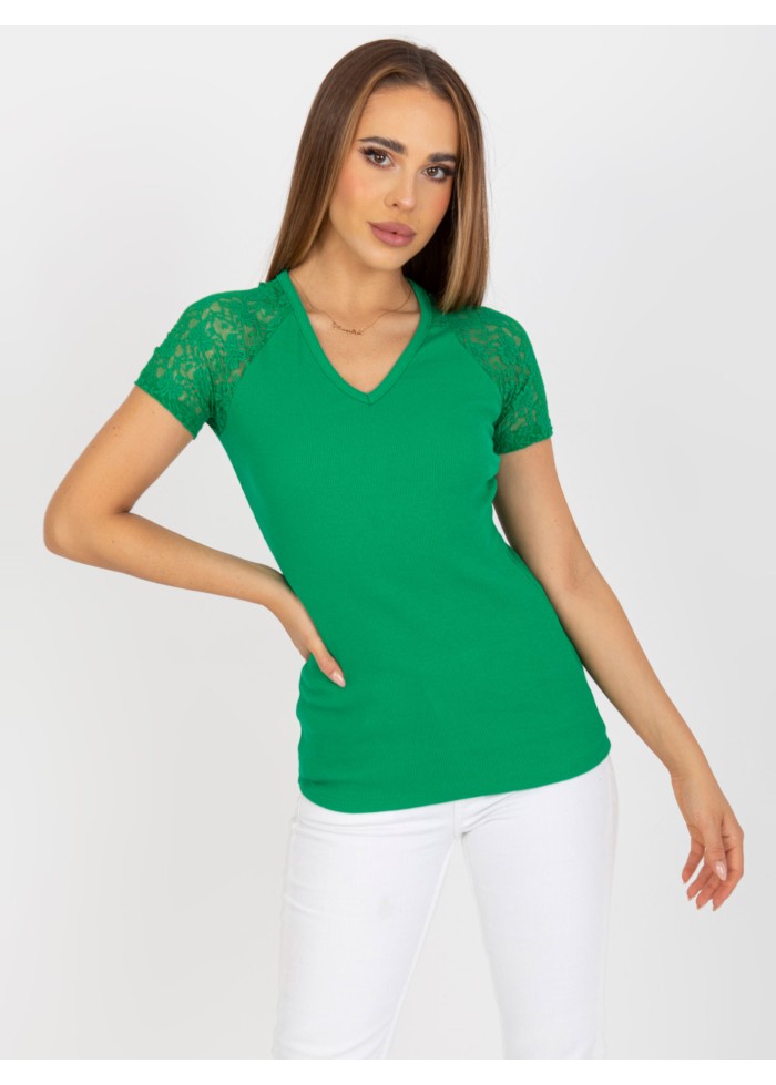 Bavlnené dámske tričko, krátke čipkované rukávy, výstrih do v, obtiahnutý strih, spôsob prania: pranie v práčke na 30°c, materiál: 90% bavlna, 10% elastan, modelka má na sebe veľkosť s, miery modelky: výška: 167 cm, prsia: 82 cm, pás: 59 cm, boky: 83 cm, rozmer produktu meraného na plocho, vo veľkosti s:, šírka pod plecami: 36 cm, celková dĺžka: 65 cm.