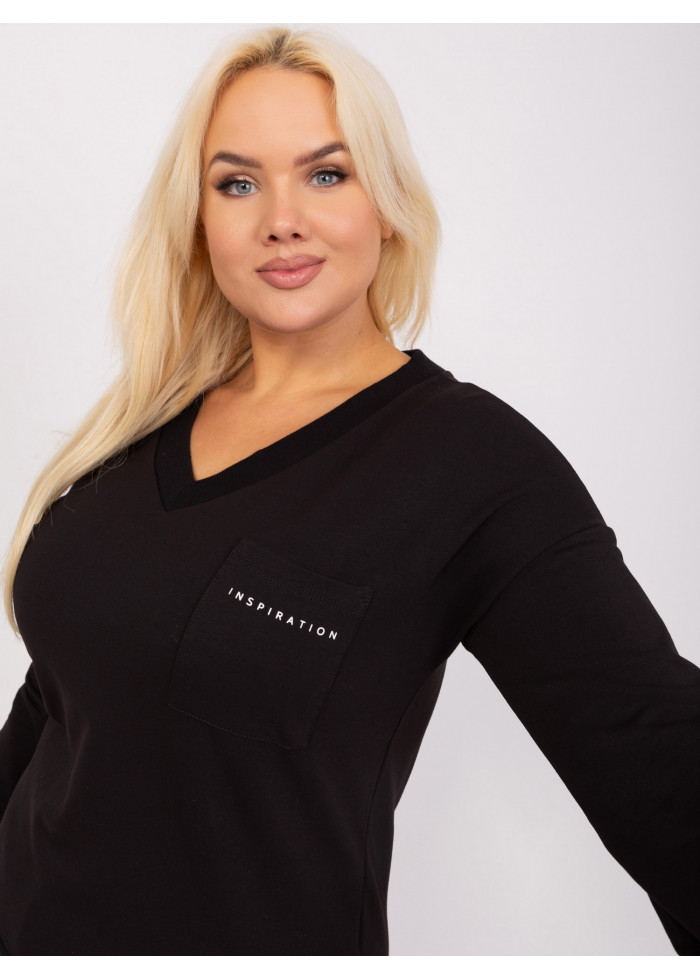 Dámske tričko s dlhým rukávom, výstrih do v, 1 náprsné vrecko, ozdobný nápis, lémy na koncoch rukávov a v spodnej časti, univerzálna veľkosť, miery modelky: výška 172 cm, prsia 103 cm, pás 73 cm, boky 103 cm., rozmer produktu meraného na plocho:, šírka pod plecami: 54 cm, dĺžka rukáva: 59 cm, celková dĺžka: 61 cm.