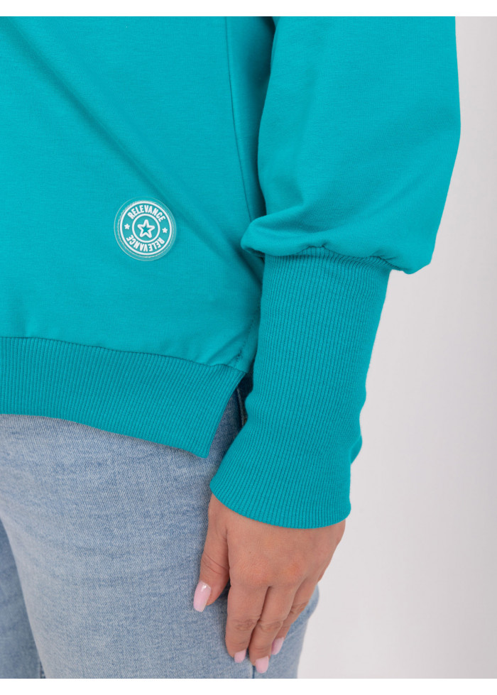 Dámske tričko s dlhým rukávom, okrúhly výstrih, lémy na koncoch rukávov a v spodnej časti, vysoké náplety na rukávoch, rozparky po bokoch, univerzálna veľkosť, miery modelky: výška 172 cm, prsia 103 cm, pás 73 cm, boky 103 cm., rozmer produktu meraného na plocho:, šírka pod plecami: 61 cm, dĺžka rukáva: 61 cm, celková dĺžka: 65 cm.