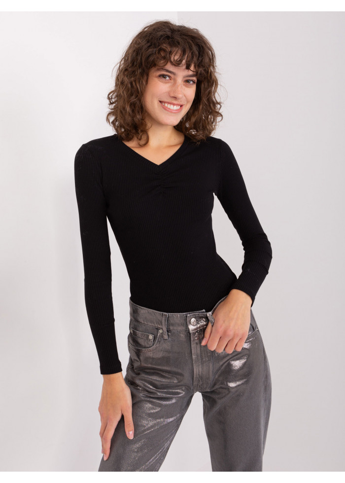 Dámske tričko s dlhým rukávom, výstrih do v, jednoduchý obtiahnutý strih, rebrovaný úplet, modelka má na sebe veľkosť s/m, miery modelky: výška: 177 cm, prsia: 84 cm, pás: 62 cm, boky: 89 cm, rozmer produktu meraného na plocho, vo veľkosti s/m:, šírka pod plecami: 37 cm, dĺžka rukáva: 56 cm, celková dĺžka: 57 cm.