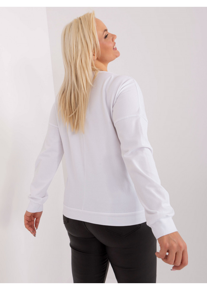 Dámske tričko s dlhým rukávom, okrúhly výstrih, lémy na koncoch rukávov a v spodnej časti, ozdobná nášivka, univerzálna veľkosť, miery modelky: výška 172 cm, prsia 103 cm, pás 73 cm, boky 103 cm., rozmer produktu meraného na plocho:, šírka pod plecami: 62 cm, dĺžka rukáva: 59 cm, celková dĺžka: 61 cm.