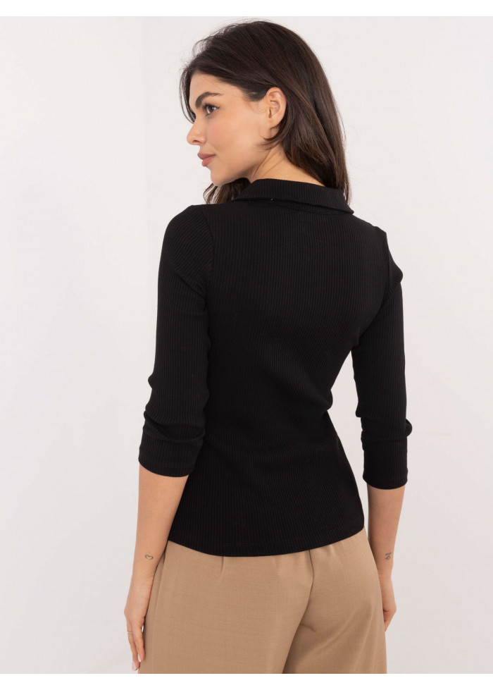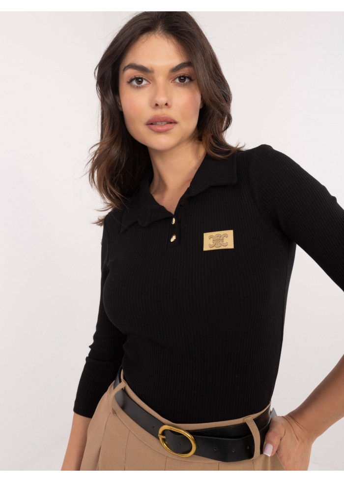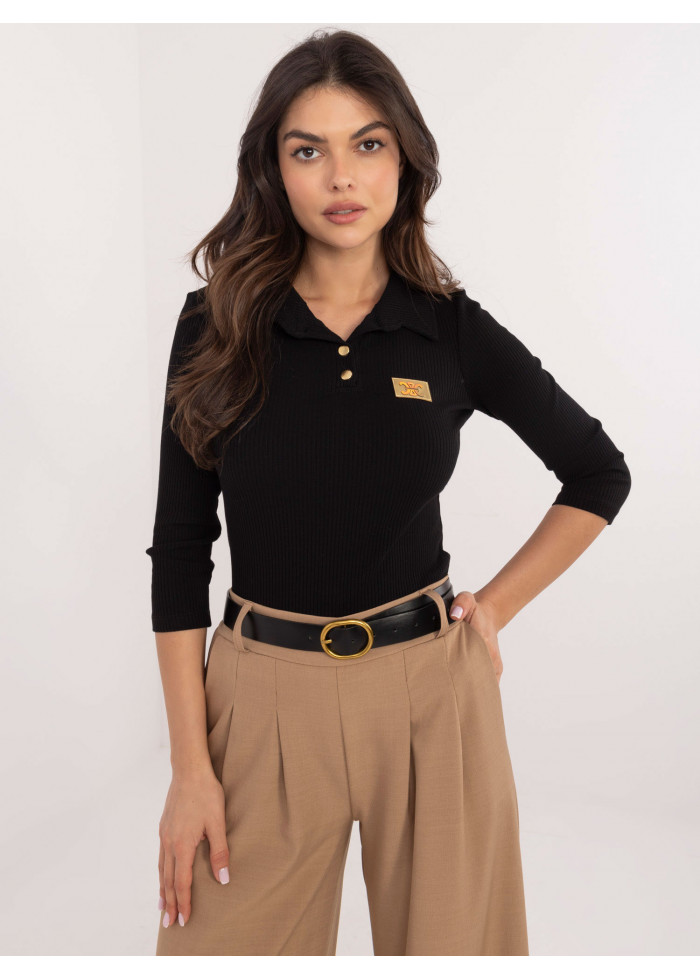 Tričko s golierom, rebrovaný vzor, zapínanie na 4 gombíky, 3/4 rukávy, ozdobná nášivka v prednej časti, modelka má na sebe univerzálnu veľkosť, miery modelky: výška 173 cm, prsia 85 cm, pás 62 cm, boky 95 cm, rozmery produktu v univerzálnej veľkosti merané na plocho:, šírka v podpazuší - 40 cm, celková dĺžka - 57 cm, obvod bokov - 78 cm, dĺžka rukáva - 42 cm, rozmery produktu v univerzálnej veľkosti po natiahnutí:, šírka v podpazuší - 57 cm, celková dĺžka - 57 cm, obvod bokov - 108 cm, dĺžka rukáva - 42 cm.