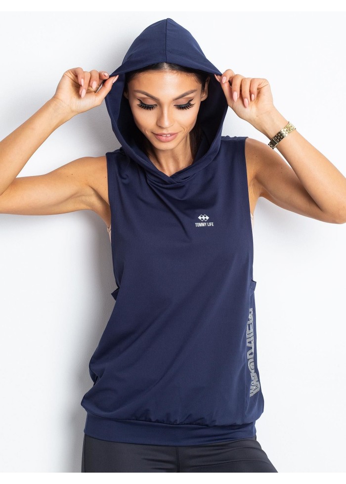 Tommy life, tričko s kapucňou, výrazný výstrih pod pazuchou, potlač, spôsob prania: pranie v práčke na 30°c, materiál: 95% polyester, 5% elastan, modelka má na sebe veľkosť s.