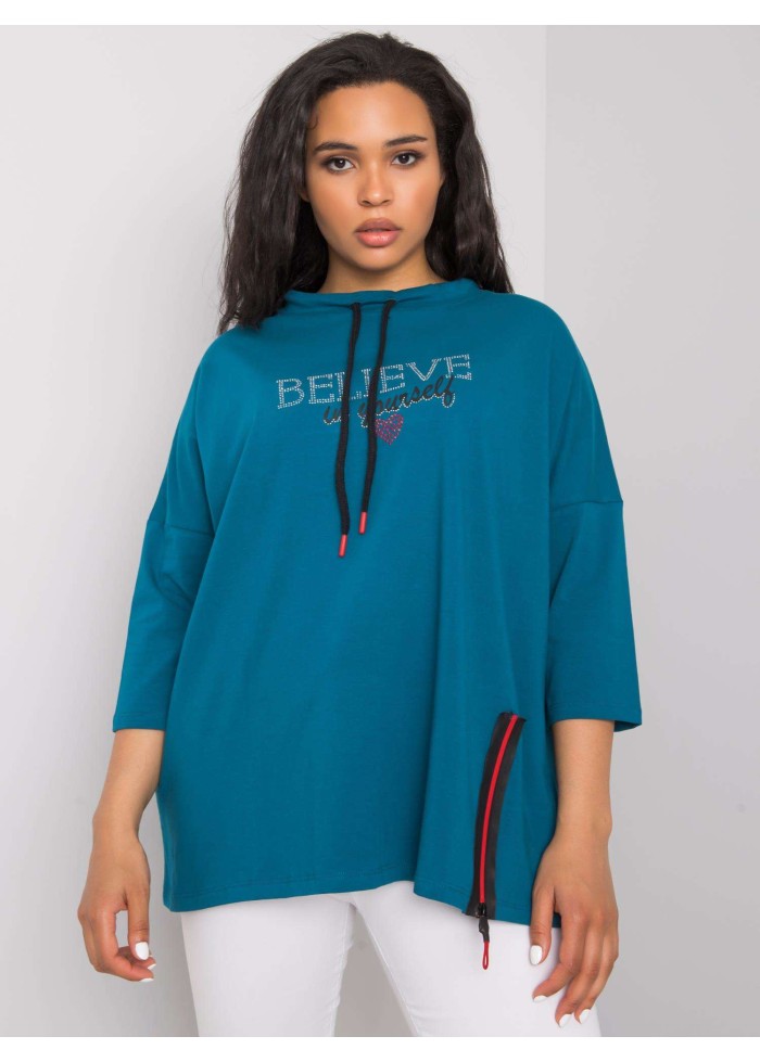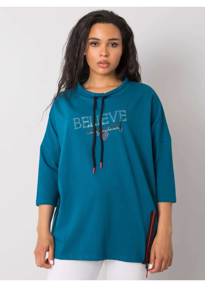 Dámske tričko s potlačou, 3/4 rukávy, okrúhly výstrih, ozdobné šnúrky na golieri, ozdobný zips v spodnej časti, spôsob prania: pranie v práčke na 30°c, materiál: 90% bavlna, 10% elastan, univerzálna veľkosť, modelka má oblečenú jednu veľkosť. rozmery modelky: výška 175 cm, prsia 98 cm, pás 76 cm, boky 108 cm., rozmer produktu meraného na plocho:, šírka pod plecami: 68 cm, celková dĺžka: 67 cm, dĺžka rukávov: 46 cm.