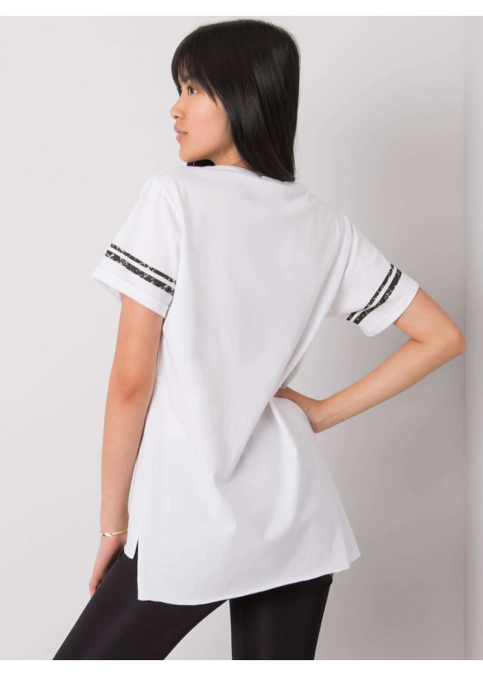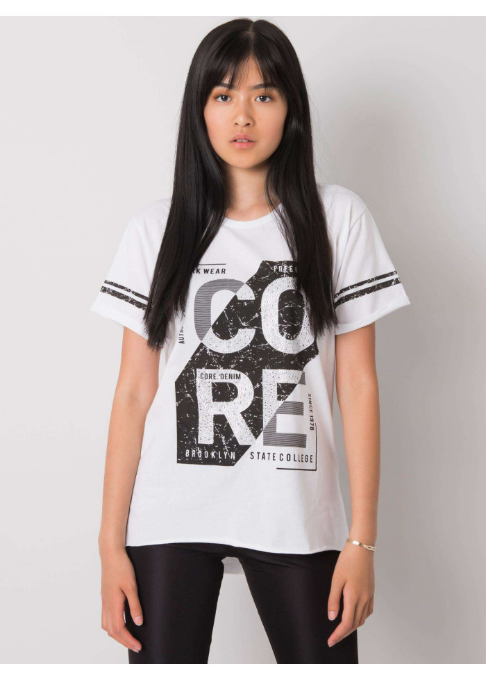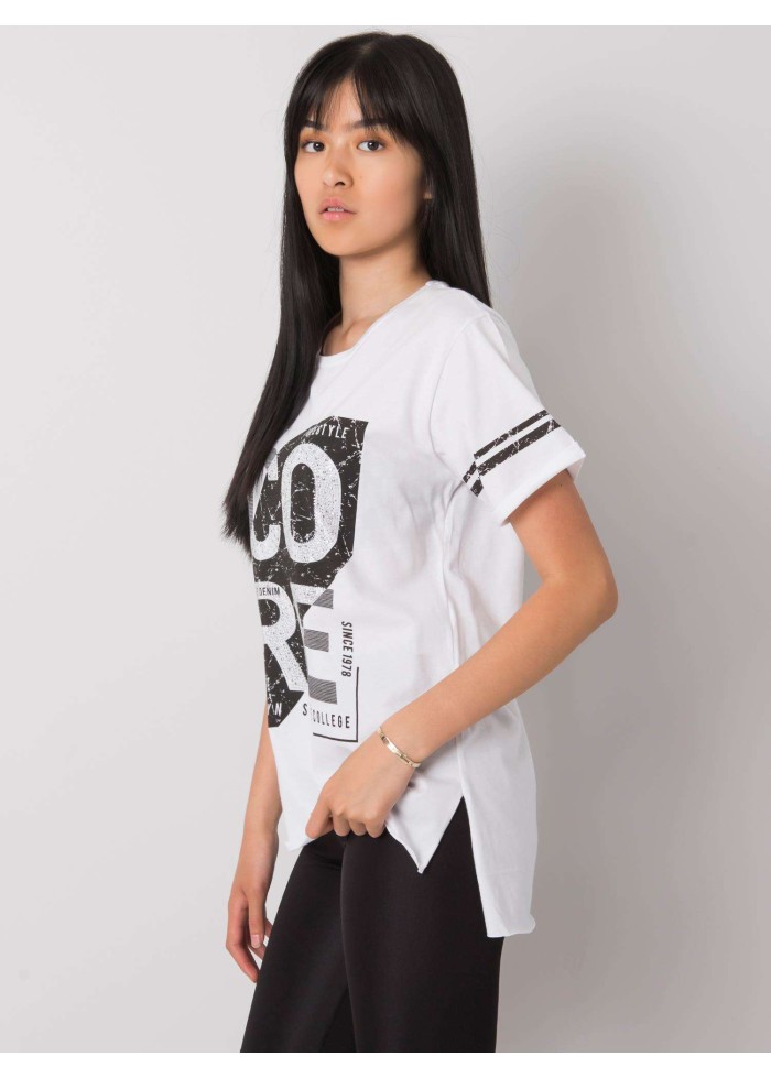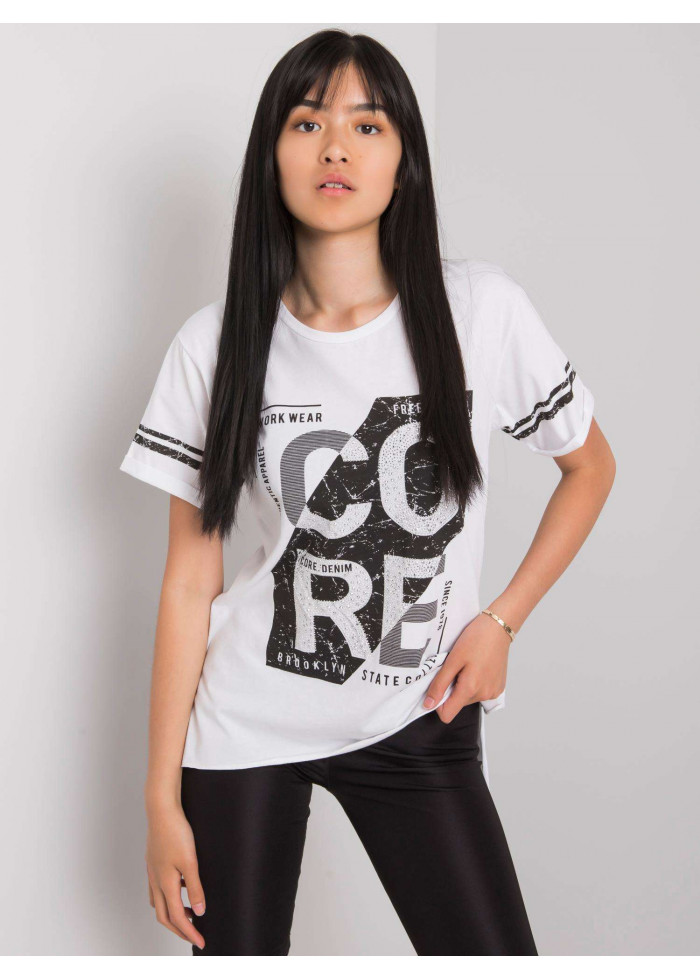 Bavlnené dámske tričko s nápisom, predlžený zadný diel, kontrastná potlač aj na rukávoch, materiál: 100% bavlna, spôsob prania: pranie v práčke na 30°c, modelka má na sebe veľkosť s. rozmery modelky: výška 167 cm, prsia 73 cm, pás 64 cm, boky 91 cm., rozmery trička vo veľkosti s merané naplocho: šírka v podpazuší - 46 cm, celková dĺžka - 68 cm.