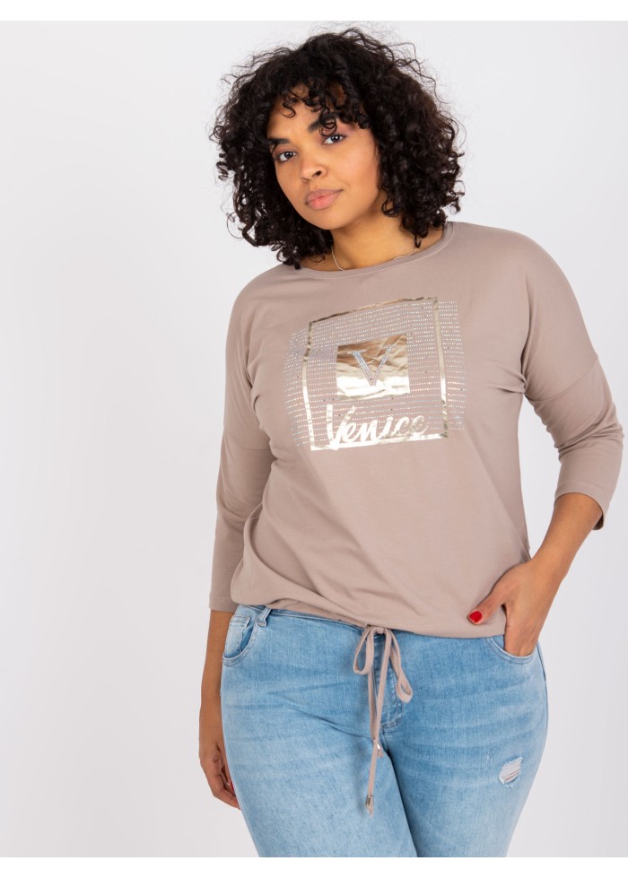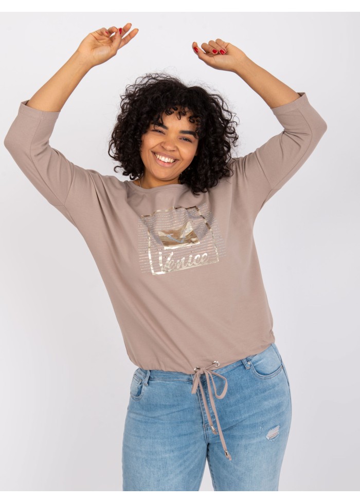 Dámske tričko s potlačou, 3/4 rukávy, sťahujúca šnúrka v spodnej časti, spôsob prania: pranie v práčke na 30°c, materiál: 90% bavlna, 10% elastan, univerzálna veľkosť, miery modelky: výška: 175 cm, prsia: 103 cm, pás: 86 cm, boky: 118 cm, rozmer produktu meraného na plocho:, šírka pod plecami: 61 cm, celková dĺžka: 64 cm, dĺžka rukávov: 40 cm.
