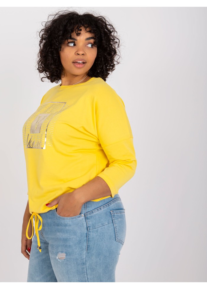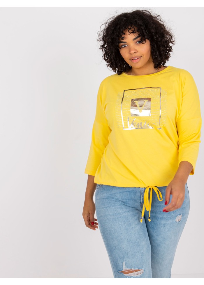 Dámske tričko s potlačou, 3/4 rukávy, sťahujúca šnúrka v spodnej časti, spôsob prania: pranie v práčke na 30°c, materiál: 90% bavlna, 10% elastan, univerzálna veľkosť, miery modelky: výška: 175 cm, prsia: 103 cm, pás: 86 cm, boky: 118 cm, rozmer produktu meraného na plocho:, šírka pod plecami: 61 cm, celková dĺžka: 64 cm, dĺžka rukávov: 40 cm.