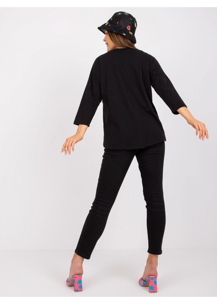 Dámske tričko s potlačou, 3/4 rukávy, okrúhly výstrih, asymetrický strih, jednoduchý voľnejší strih, spôsob prania: pranie v práčke na 30°c, materiál: 90% bavlna, 10% elastan, modelka má na sebe veľkosť s/m, miery modelky: výška 170 cm, prsia 93 cm, pás 66 cm, boky 93 cm., rozmer produktu meraného na plocho, vo veľkosti s/m:, šírka pod plecami: 61 cm, dĺžka rukáva: 42 cm, celková dĺžka: vpredu: 59 cm, vzadu: 69 cm.