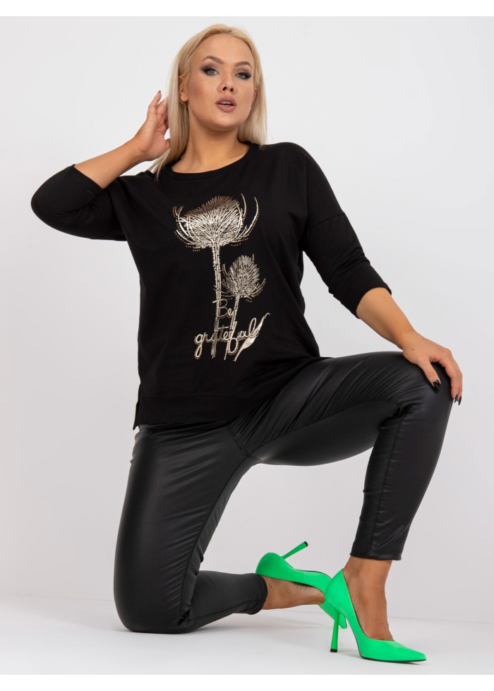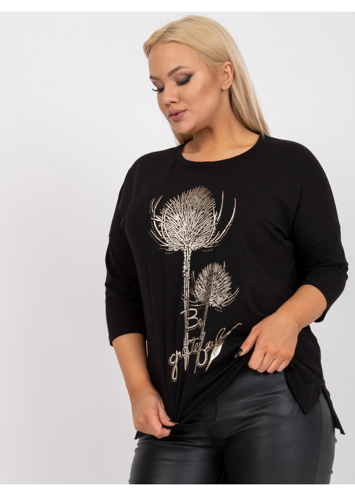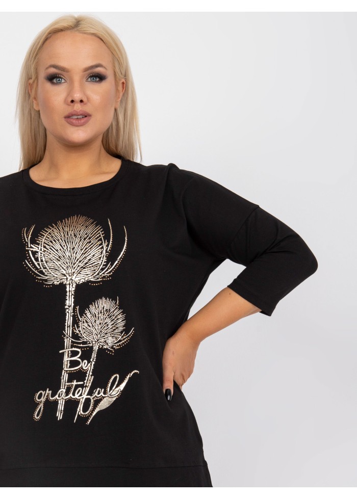 Dámske tričko s potlačou, 3/4 rukávy, lém v spodnej časti, okrúhly výstrih, rozparky po bokoch, spôsob prania: pranie v práčke na 30°c, materiál: 90% bavlna, 10% elastan, univerzálna veľkosť, miery modelky: výška 172 cm, prsia 103 cm, pás 73 cm, boky 103 cm., rozmer produktu meraného na plocho:, šírka pod plecami: 64 cm, dĺžka rukáva: 41 cm, celková dĺžka: 69 cm.
