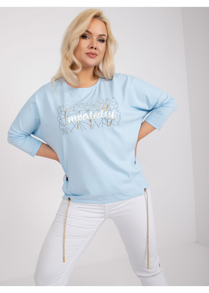 Dámske tričko s potlačou, 3/4 rukávy, okrúhly výstrih, sťahujúca šnúrka v spodnej časti, spôsob prania: pranie v práčke na 30°c, materiál: 90% bavlna, 10% elastan, univerzálna veľkosť, miery modelky: výška 172 cm, prsia 103 cm, pás 73 cm, boky 103 cm., rozmer produktu meraného na plocho:, šírka pod plecami: 69 cm, dĺžka rukáva: 42 cm, celková dĺžka: 67 cm.