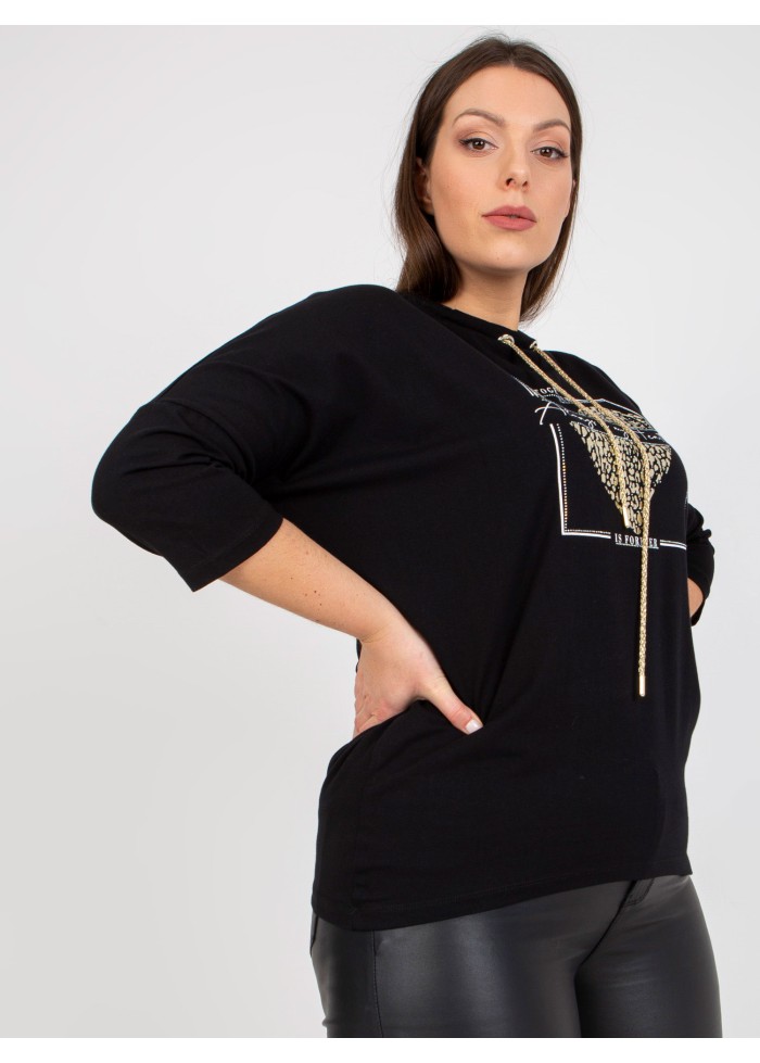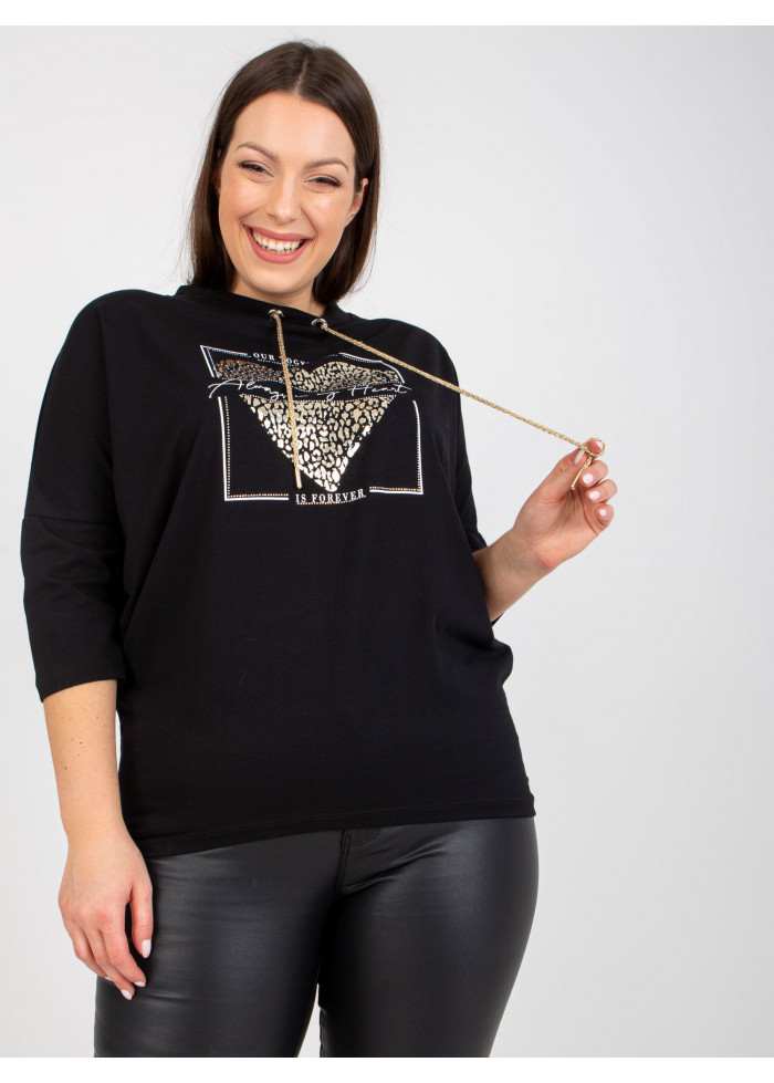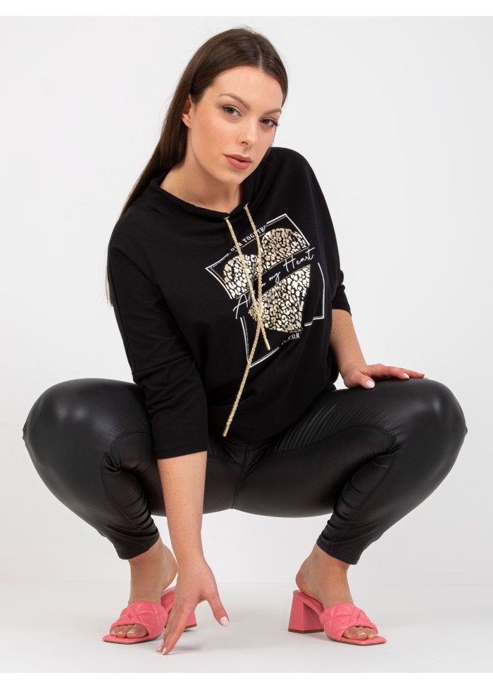 Dámske tričko s potlačou, okrúhly výstrih, ozdobná šnúrka v dekolte, 3/4 rukávy, spôsob prania: pranie v práčke na 30°c, materiál: 90% bavlna, 10% elastan, univerzálna veľkosť, miery modelky: výška: 176 cm, prsia: 104 cm, pás: 87 cm, boky: 119 cm, rozmer produktu meraného na plocho:, šírka pod plecami: 76 cm, dĺžka rukáva: 42 cm, celková dĺžka: 71 cm.