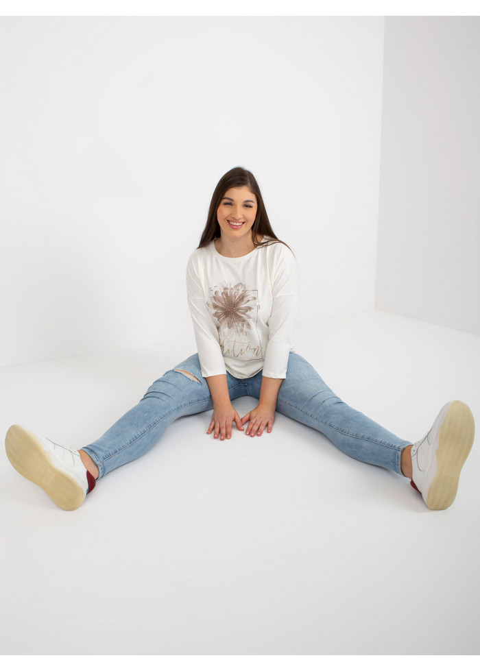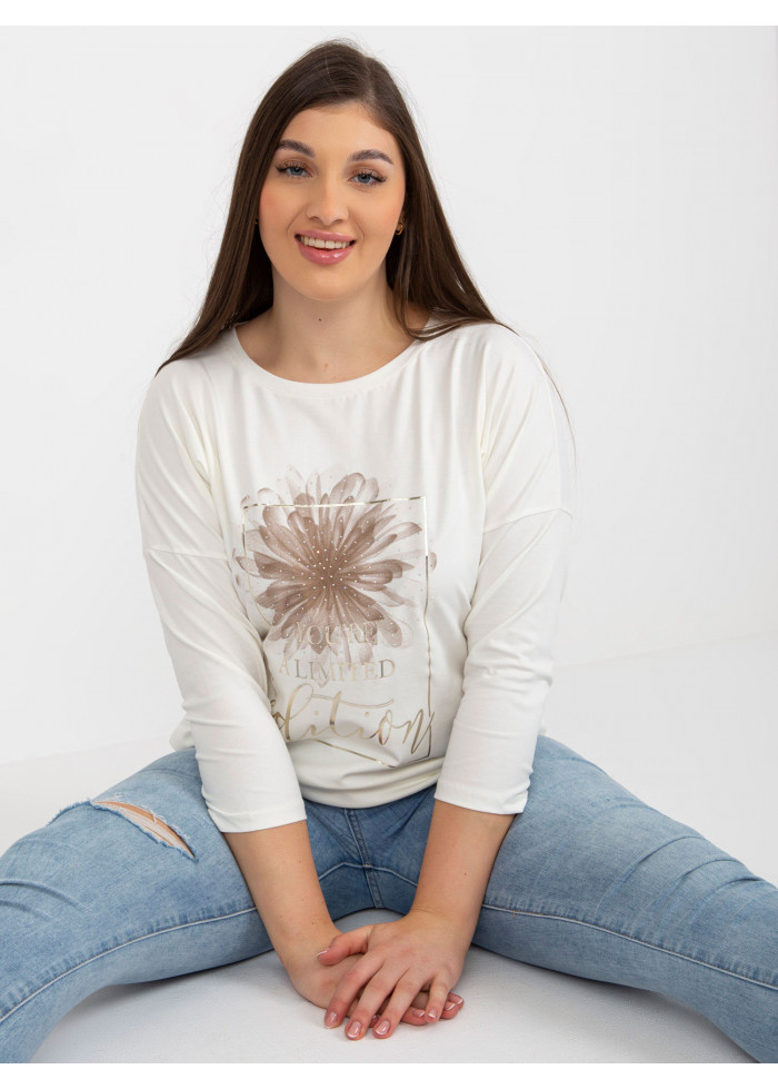 Dámske tričko s potlačou, okrúhly výstrih, 3/4 rukávy, univerzálna veľkosť, miery modelky: výška 172 cm, prsia 103 cm, pás 73 cm, boky 103 cm., rozmer produktu meraného na plocho:, šírka pod plecami: 58 cm, dĺžka rukáva: 44 cm, celková dĺžka: 61 cm.