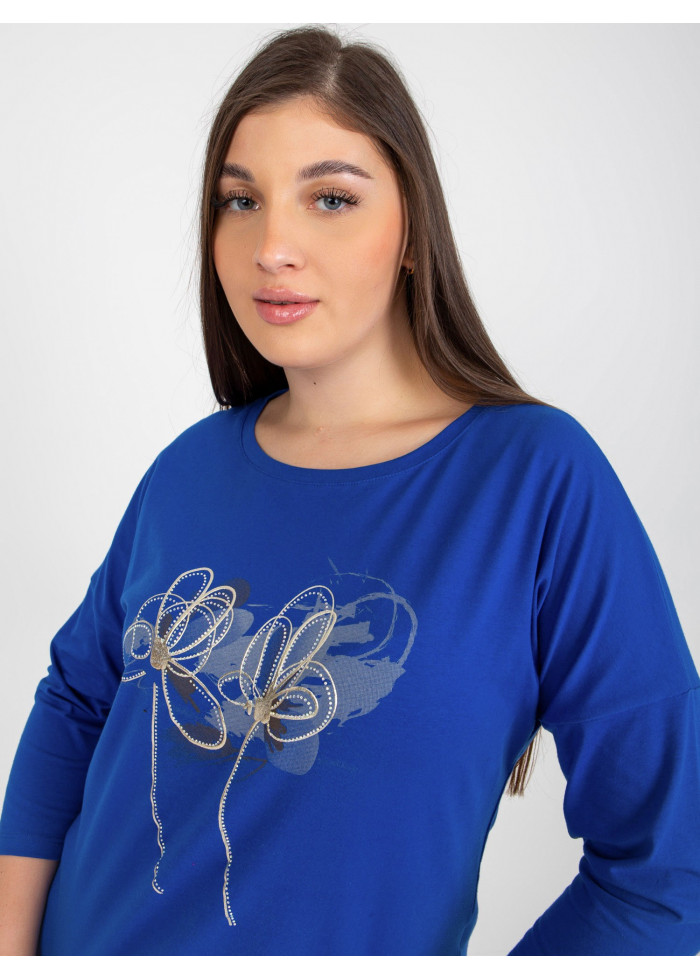 Dámske tričko s potlačou, okrúhly výstrih, 3/4 rukávy, jednoduchý strih, univerzálna veľkosť, miery modelky: výška: 174 cm, prsia: 100 cm, pás: 74 cm, boky: 107 cm, rozmer produktu meraného na plocho:, šírka pod plecami: 59 cm, dĺžka rukáva: 44 cm, celková dĺžka: 65 cm.