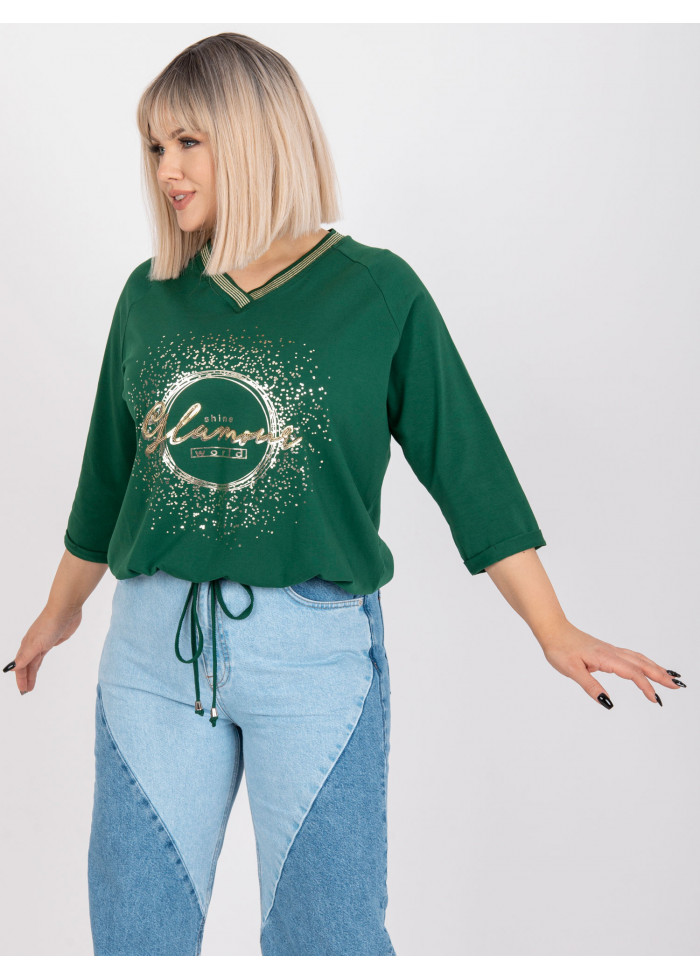 Dámske tričko s potlačou, výstrih do v, 3/4 rukávy, šnúrka na stiahnutie v spodnej časti, materiál: 90% bavlna, 10% elastan, spôsob prania: pranie v práčke na 30°c, univerzálna veľkosť, miery modelky: výška 172 cm, prsia 103 cm, pás 73 cm, boky 103 cm., rozmer produktu meraného na plocho:, šírka pod plecami: 65 cm, dĺžka rukáva: 42 cm, celková dĺžka: 60 cm.