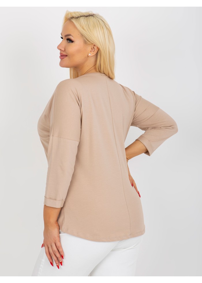 Dámske tričko s potlačou, asymetrický strih, 3/4 rukávy, okrúhly výstrih, univerzálna veľkosť, miery modelky: výška: 176 cm, prsia: 111 cm, pás: 82 cm, boky: 114 cm, rozmer produktu meraného na plocho:, šírka pod plecami: 61 cm, dĺžka rukáva: 44 cm, celková dĺžka: vpredu: 61 cm, vzadu: 72 cm.