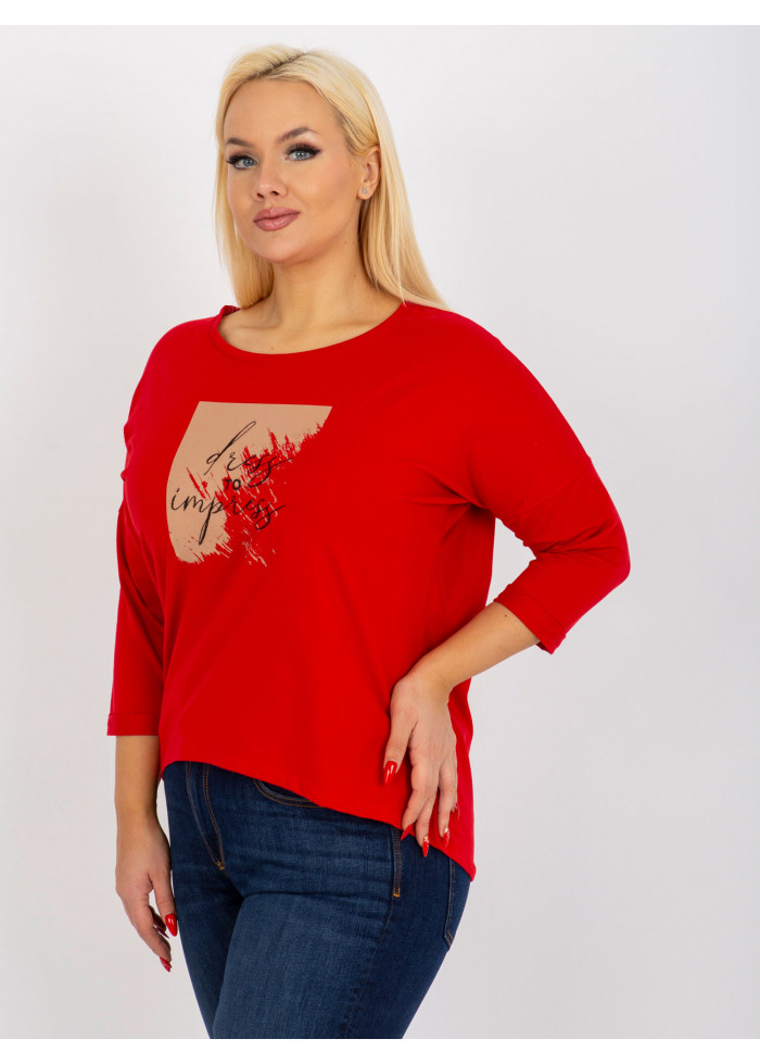 Dámske tričko s potlačou, asymetrický strih, 3/4 rukávy, okrúhly výstrih, univerzálna veľkosť, miery modelky: výška: 176 cm, prsia: 111 cm, pás: 82 cm, boky: 114 cm, rozmer produktu meraného na plocho:, šírka pod plecami: 61 cm, dĺžka rukáva: 44 cm, celková dĺžka: vpredu: 61 cm, vzadu: 72 cm.