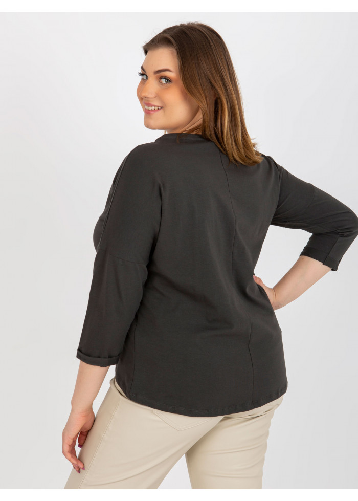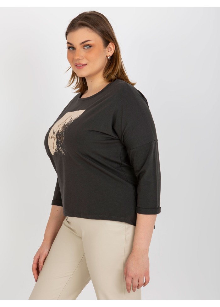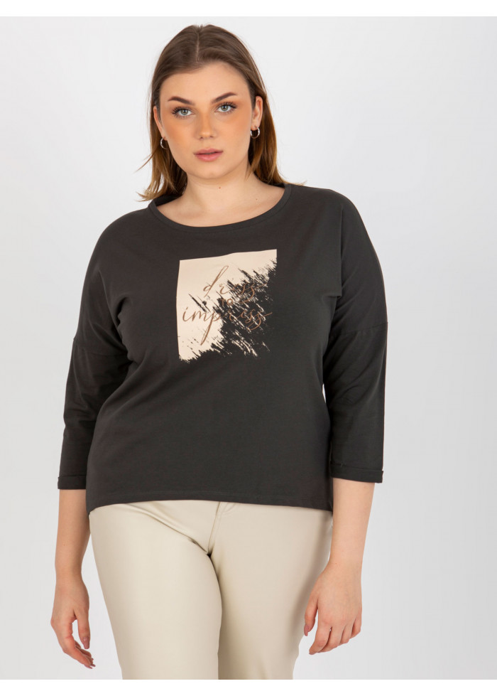 Dámske tričko s potlačou, asymetrický strih, 3/4 rukávy, okrúhly výstrih, univerzálna veľkosť, miery modelky: výška: 176 cm, prsia: 111 cm, pás: 82 cm, boky: 114 cm, rozmer produktu meraného na plocho:, šírka pod plecami: 61 cm, dĺžka rukáva: 44 cm, celková dĺžka: vpredu: 61 cm, vzadu: 72 cm.